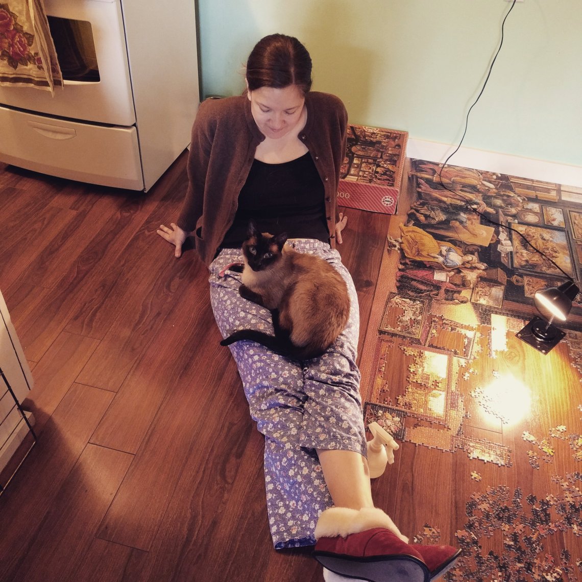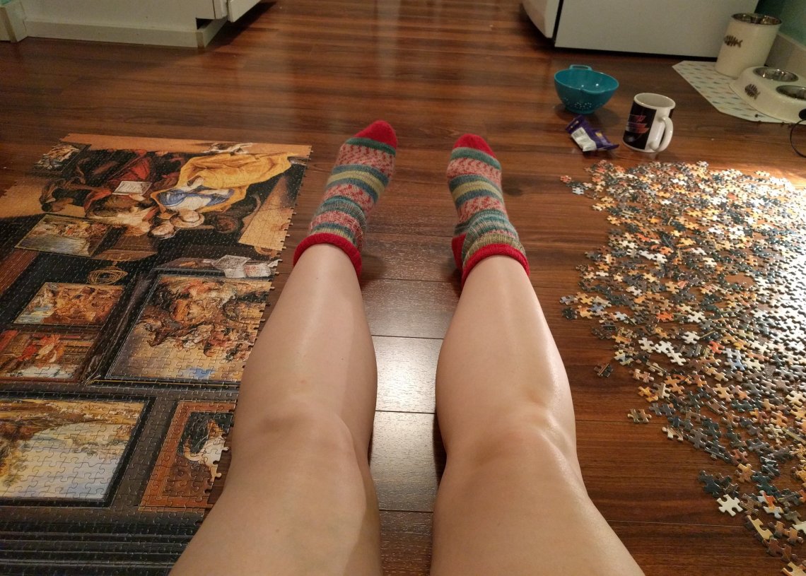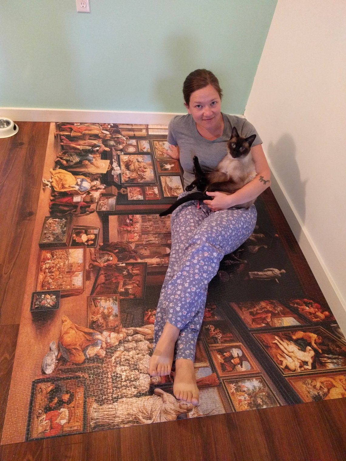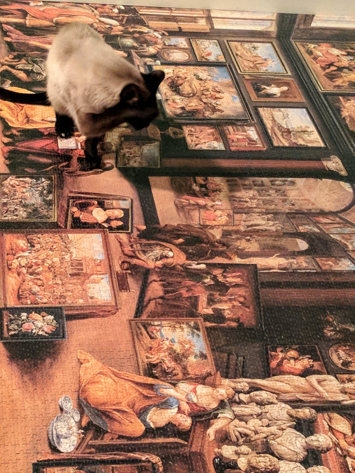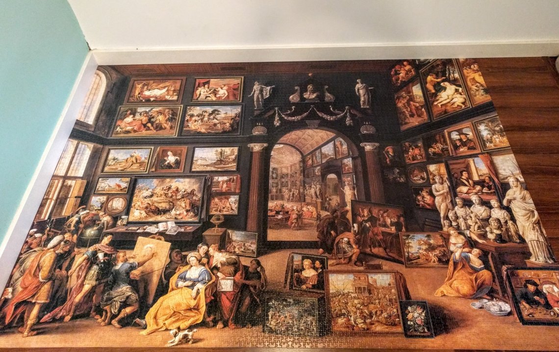 This is indeed an 8000 piece puzzle that I assembled during recital season at the dance school, while rehearsing lines for my new position as a tour guide, and yes, it did sit there for eight weeks while I was away in Europe. I came back about two weeks ago so eager to finish this.