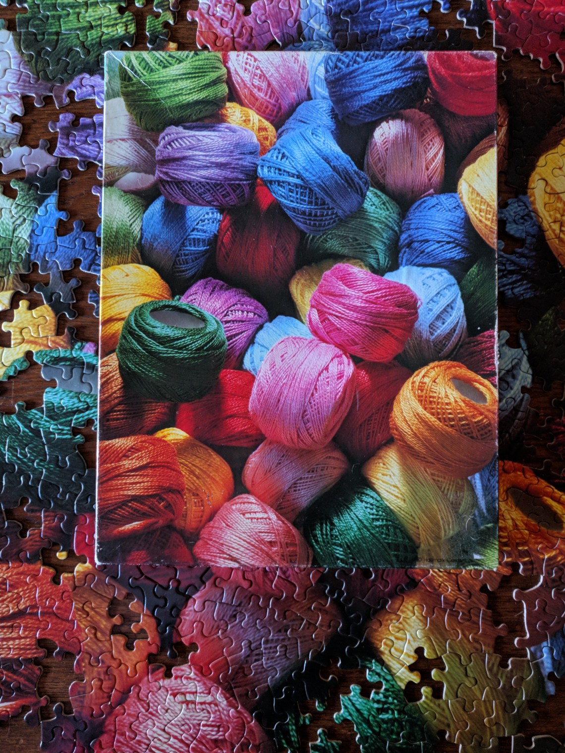 When I found this puzzle, I was so excited to put this together. This is a classic Springbok from the early 80’s and being a knitting enthusiast, naturally this image spoke to me!