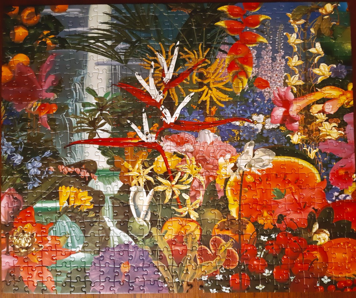 Yesterday, they were especially tuckered and enjoying a nap in their new favourite spot (on top of the fridge and kitchen cabinets) so I silently pulled out this puzzle and got to work. It’s a pretty easy one and I was able finish it last night. It is a Galison Museum Puzzle, 500 pieces, 1 piece missing. Bonus… 2 extra pieces from a different puzzle.