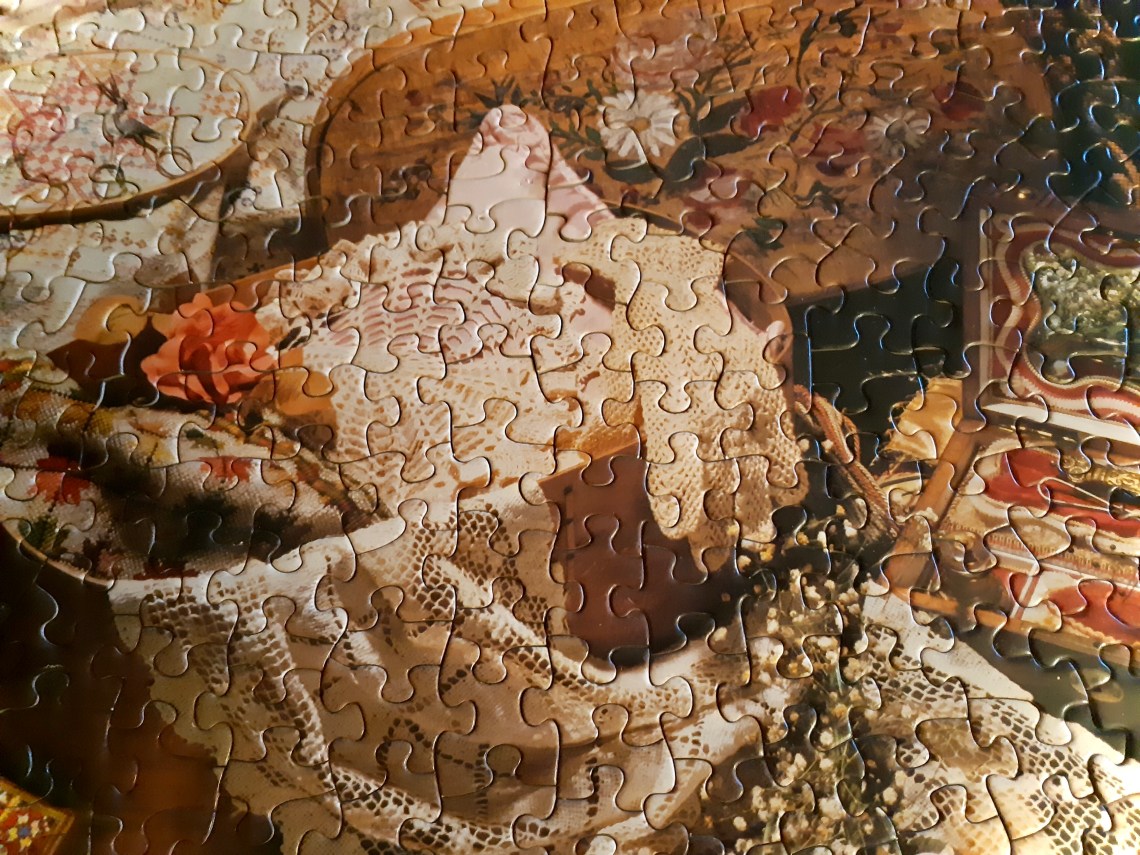 I love to thrift, finding treasures that people have thrown away. The challenge and the quiet time focusing on assembling jigsaw puzzle pieces into a final image has interested and excited me for as long as I can remember. A few years ago I noticed that thrift stores always have a fully stocked "puzzles and games" section. Finally an endless supply of new puzzles to solve and a reason to keep thrifting!