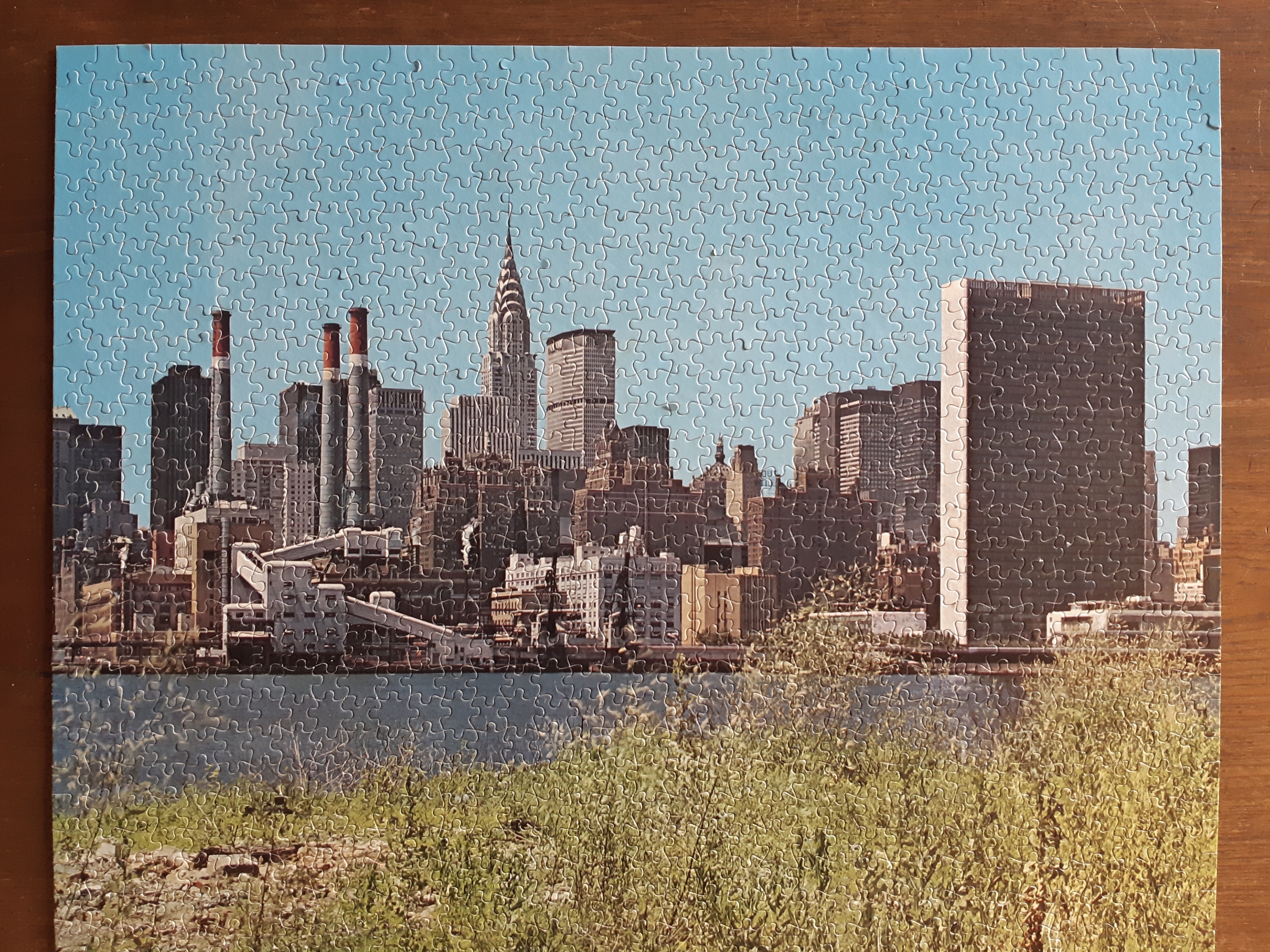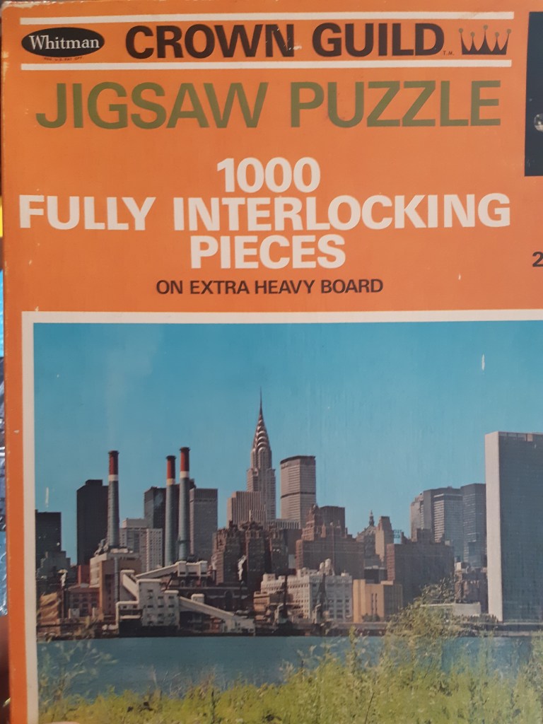 A vintage Crown Guild landscape puzzle by Whitman. I have no idea when this puzzle was released but I have a feeling that the skyline in New York has changed quite a bit. In this photo, the Chrysler Building looks to be the tallest in the skyline, all perspective, no doubt!
