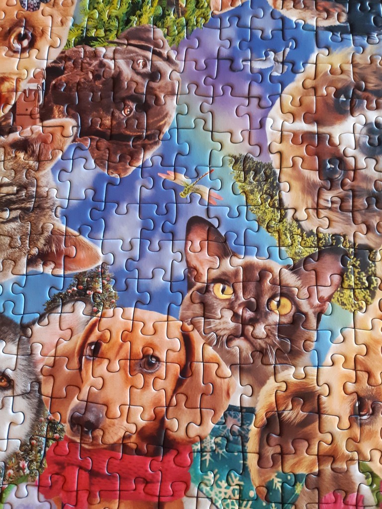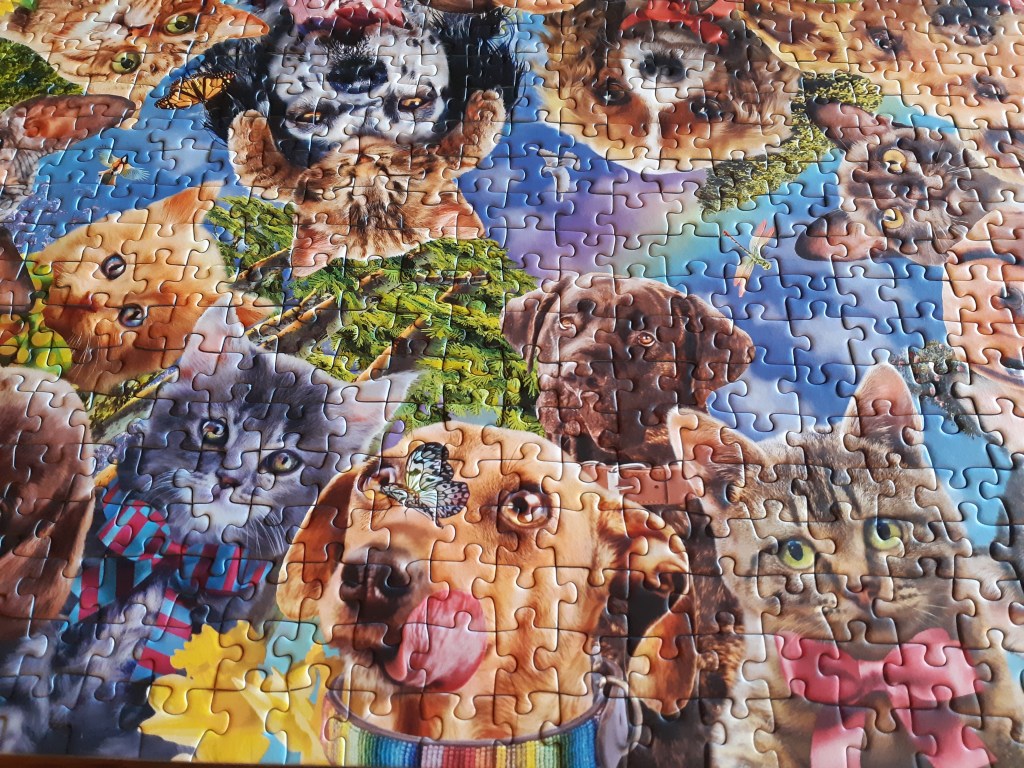 I decided to assemble this brightly coloured, silly, and simple puzzle called Animal Selfie by Ravensburger. 500 pieces, not too challenging and fun. For an extra challenge, I didn’t reference the box, just to make the puzzle last a little longer.