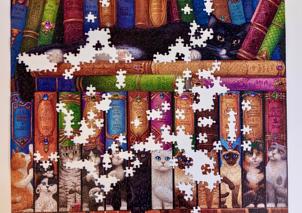 Imagine how challenging it would be to try and assemble a 1000 piece jigsaw puzzle with 151 pieces missing! It has been a very long time since I had a puzzle missing so many pieces. The last one was called Great Balls of Yarn, by Springbok.