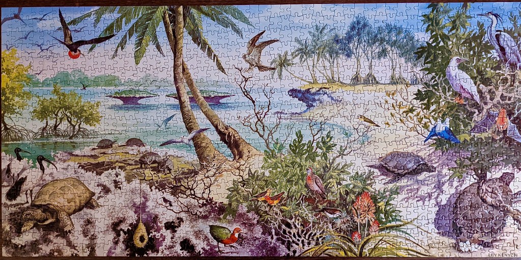 This gorgeous 1000 piece puzzle by James Hamilton was such a score! I can’t believe it, but I almost didn’t buy it from the thrift shop. I found it at the VGH thrift shop along with another James Hamilton puzzle that I blogged a few months ago.