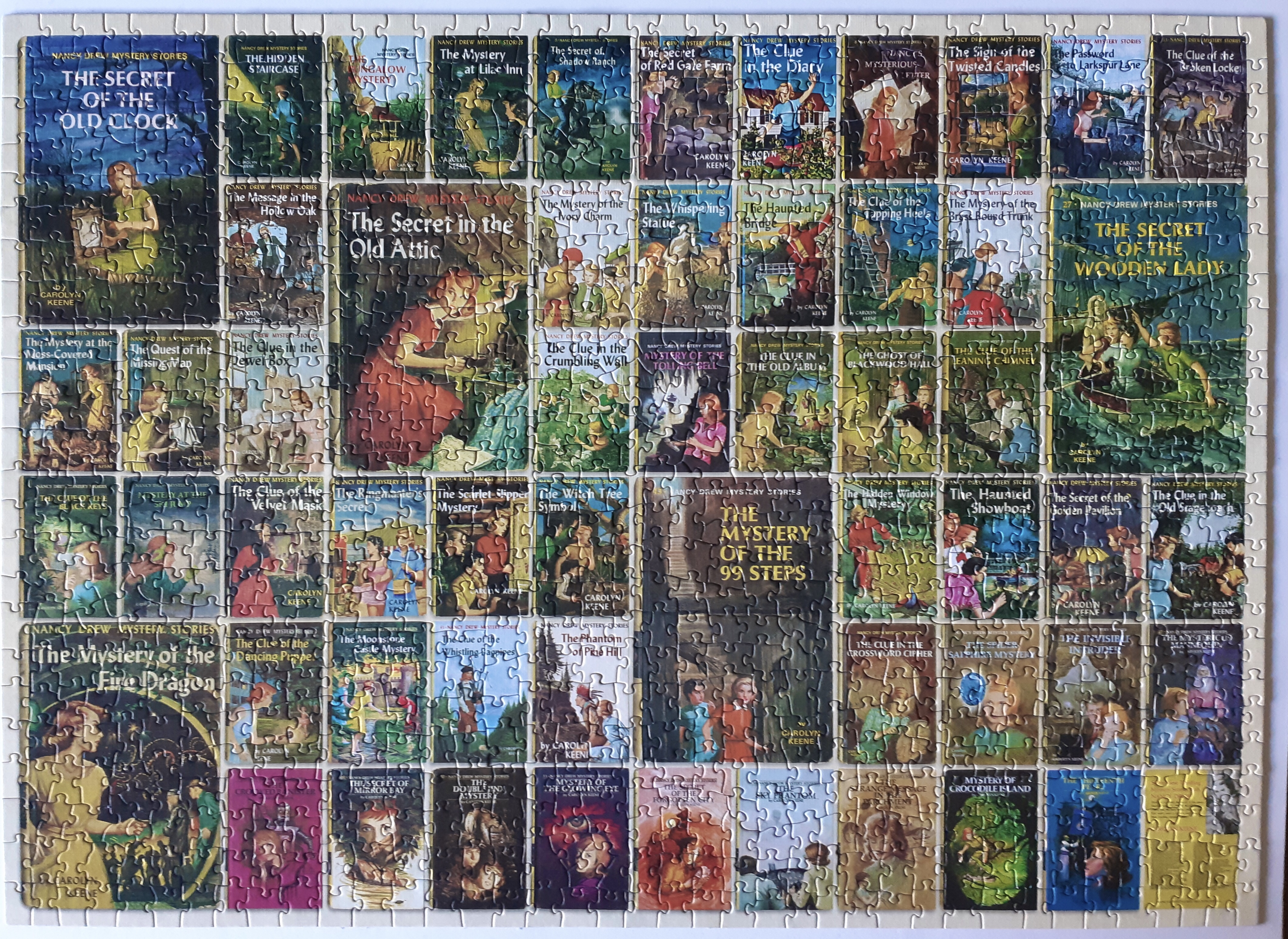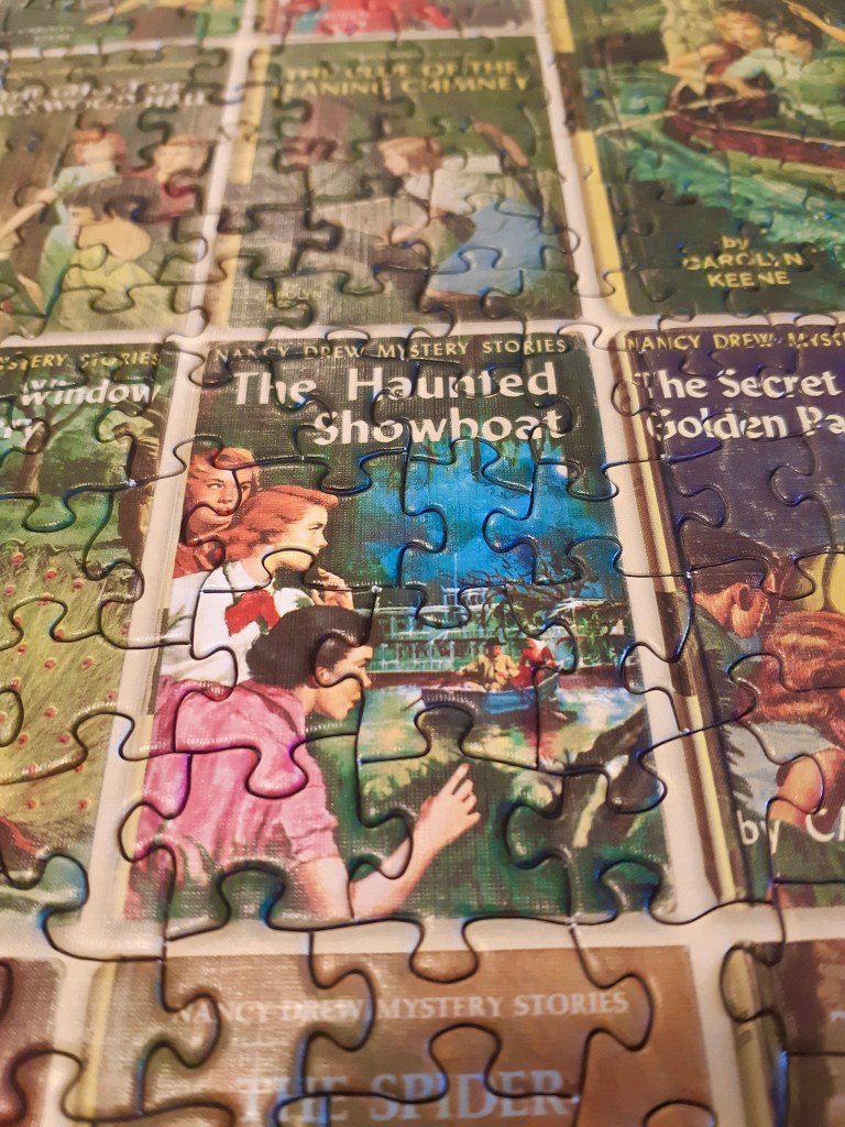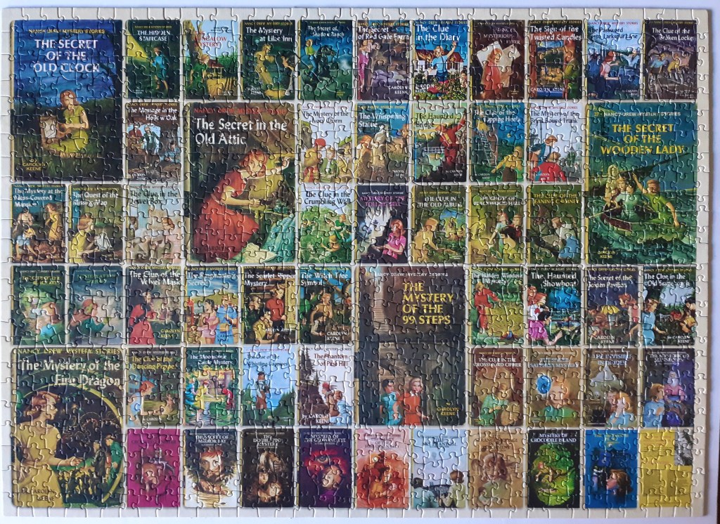 Well, I’ve never read a Nancy Drew story, or seen one of the shows but I have always loved these kitschy book covers. When Cobble Hill first released this puzzle I was very tempted. I found this one at my local Value Village a few months ago and smiled once the last piece was placed. 1000 pieces and complete! I’m definitely keeping this puzzle in my collection, it’s awesome. A nice medium challenge and so much fun to see each cover come together.