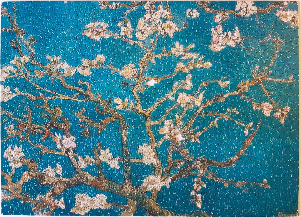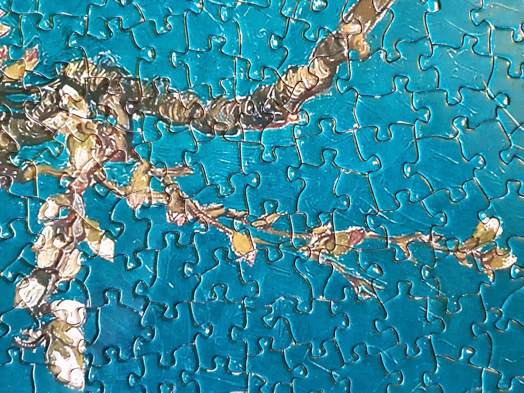 I bought this puzzle for my Oma about ten or so years ago at the Vancouver Art Gallery. I wasn’t entirely sure if she liked puzzles but I thought she would like the image so I bought it for her. She did really like it but she commented how hard it was. She had worked on it for three months! Now, she won’t sit and puzzle for a long period of time like me but she wasn’t kidding. This is hard. She used to do this puzzle once a year until this past year and she said that she was finished with it. This last time around she had lost a piece but asked if I wanted to do this one again before she passed it on.