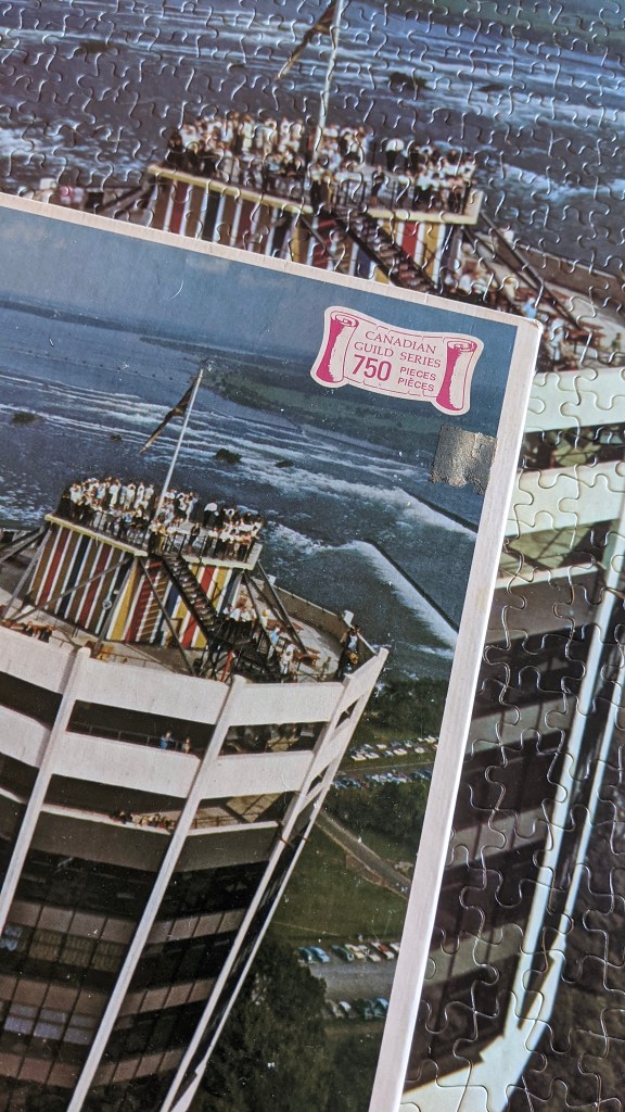 It’s kid tested! I recently found this vintage Guild by Whitman 750 piece puzzle at Value Village. I chose it because I remember visiting Niagara Falls with my family as a kid. The falls are absolutely amazing, I was blown away as a kid and all the other times that I visited after that. It never lost its power, in my opinion.