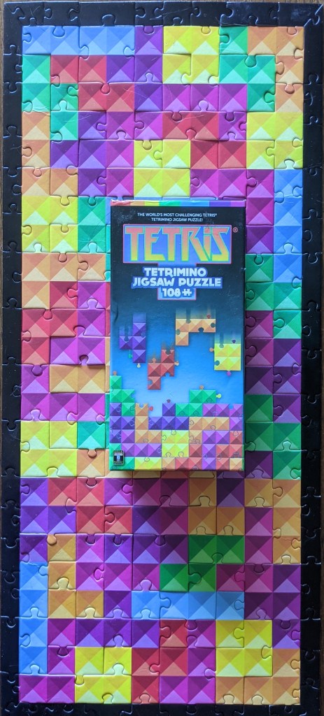 What a score! A 108 piece Tetris jigsaw puzzle. Each piece has the interlocking bits that regular jigsaws do but a cool feature is that they are the classic Tetris block shapes!