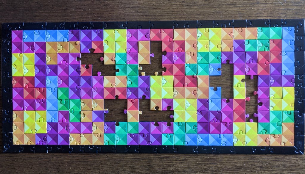 But as you can see, they aren’t solid colours like the game which adds challenge but also provides your clues to complete the puzzle.