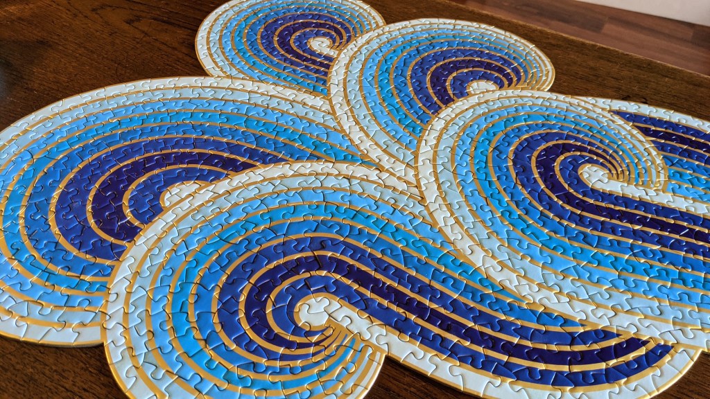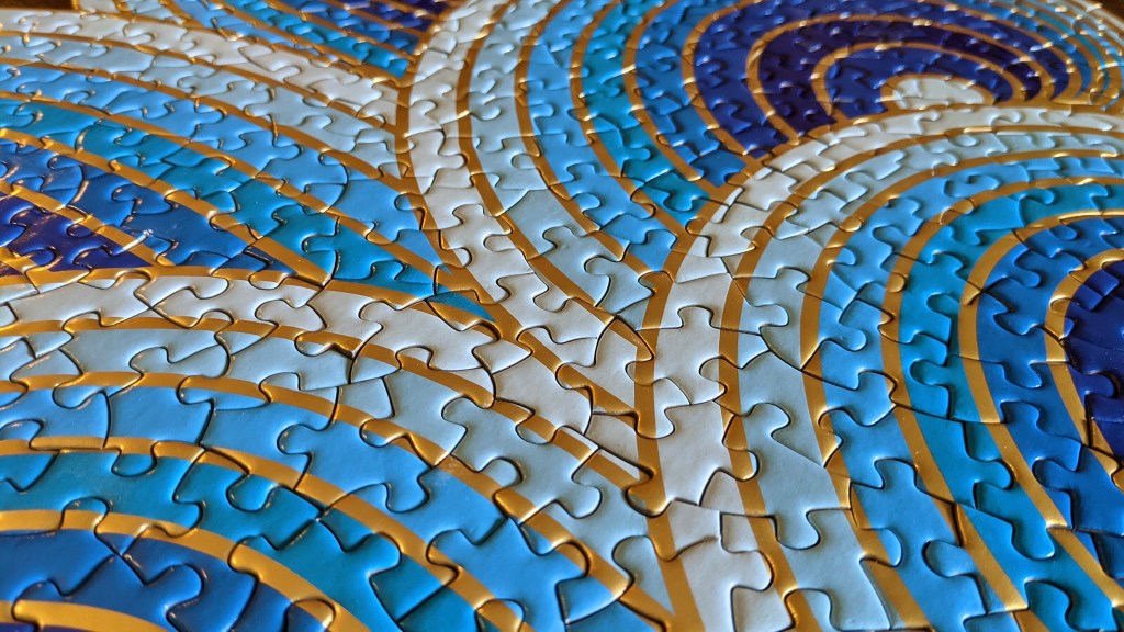 This puzzle is stunning! I’d seen it all over my Instagram feed and deep down I knew that I’d never find this in a thrift store. Imagine how surprised I was when I opened this up! It was so exciting. The blue and gold together are such a satisfying combo.