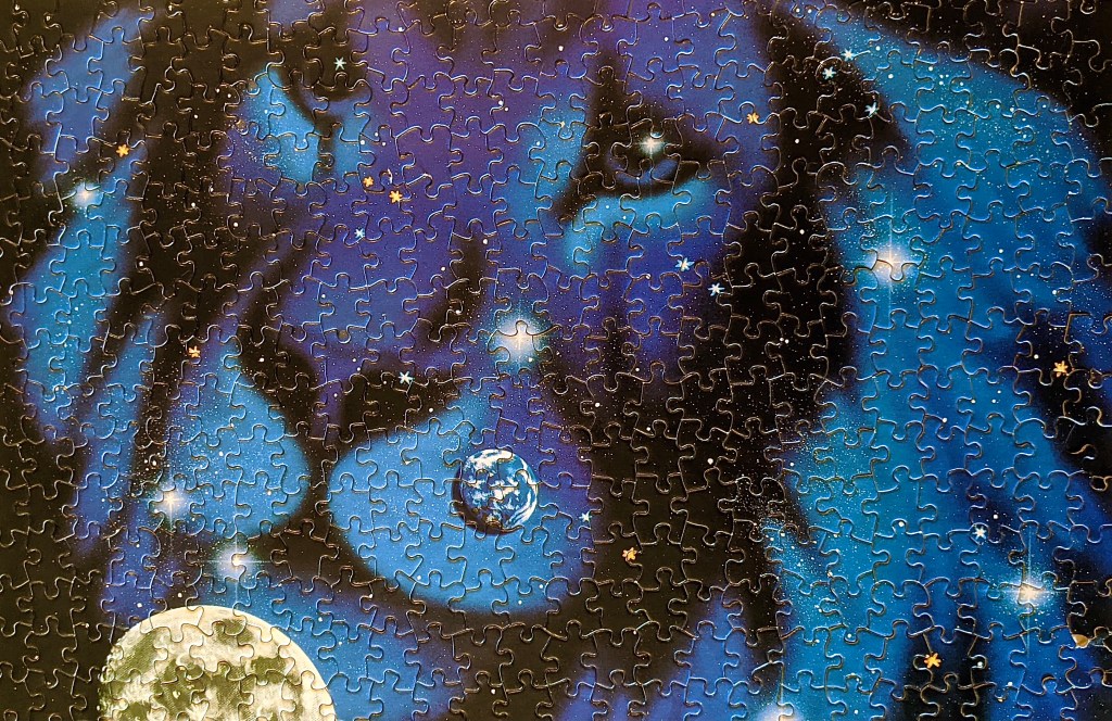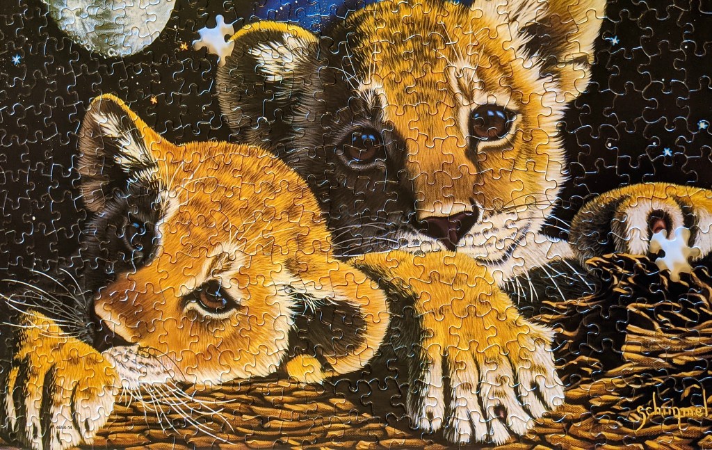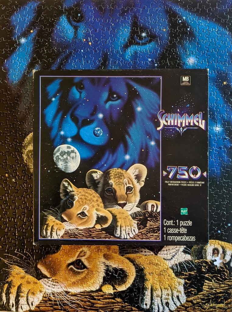 You might be able to see in the photos that there were a couple pieces missing, which was too bad. It also seems that one small section of the puzzle got wet, maybe? The pieces had kind of come apart, but that really didn’t bother me. It was a great experience overall and I learned about a new artist, Schim Schimmel!