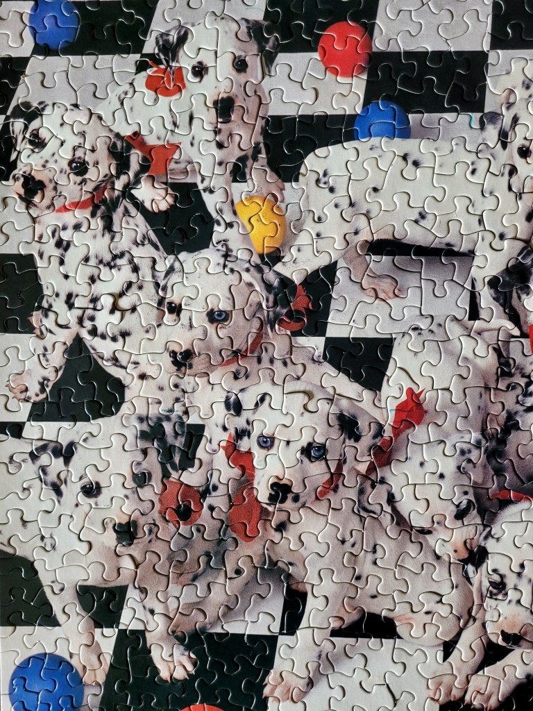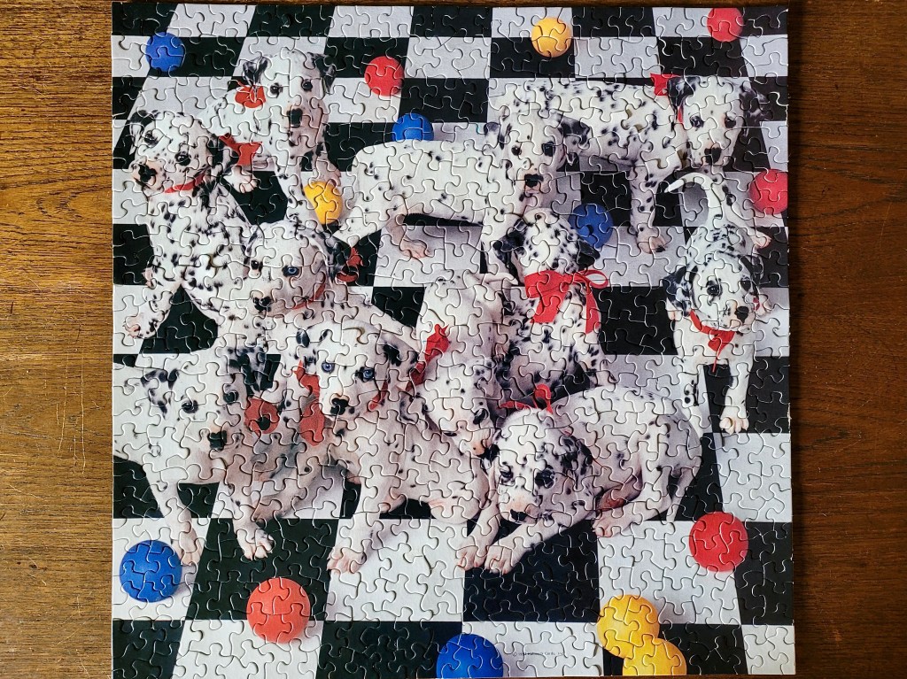 But yes, Dalmatian puppies with bows on and coloured toys and on a black and white checkered floor! This puzzle screams 1993. I this this might have been around that time that I would have been watching 101 Dalmatian on repeat at home too! I was 11 years old when this puzzle came out.