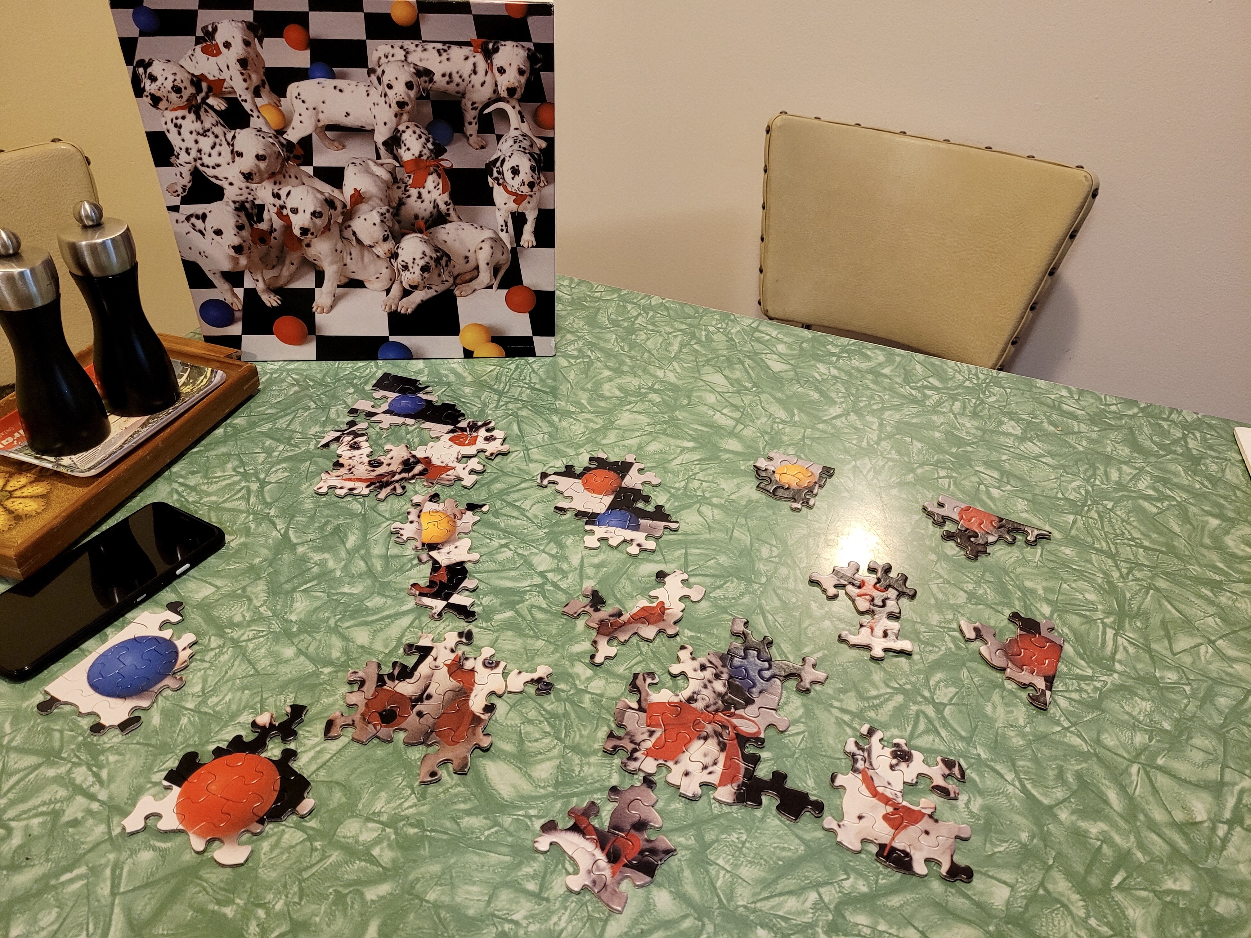 I think my cats are a little concerned. Two DOG puzzles in a row?! I didn’t totally realize that I had chosen another dog puzzle from my to do pile until this one was complete. Then both cats came and sat on the puzzle. Worry? Protest?