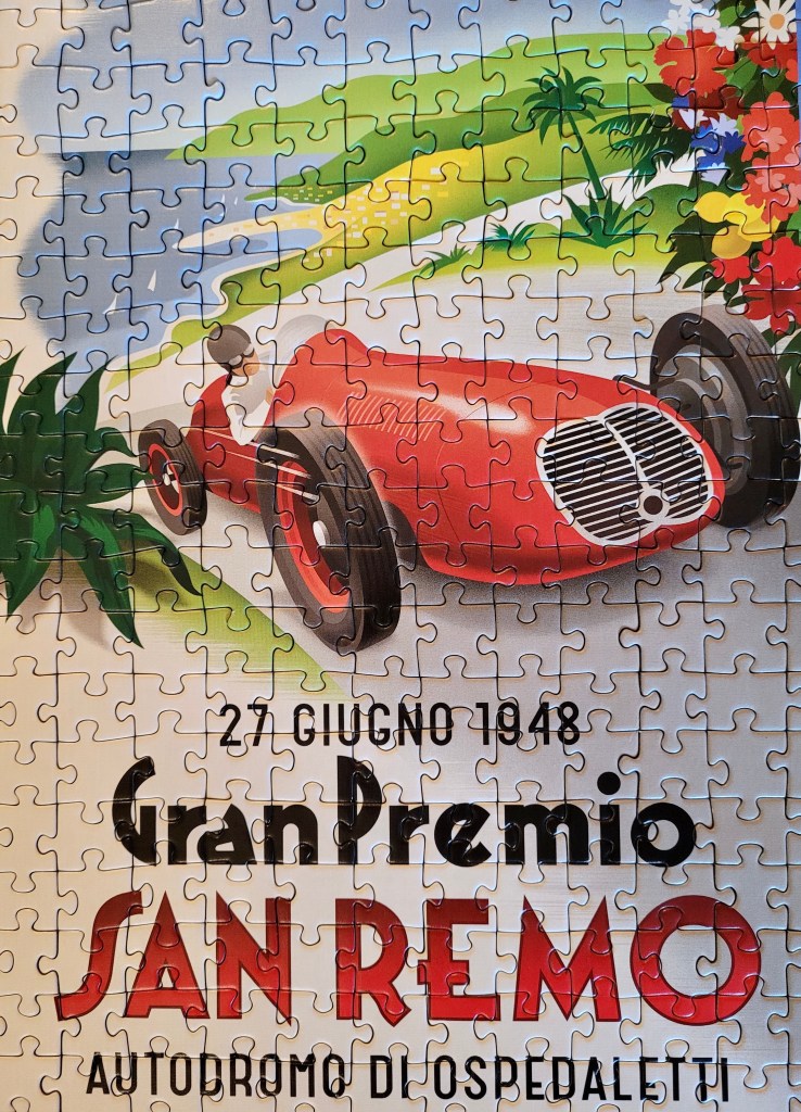 This here puzzle on the other hand, was great! Vintage poster art, bright colours and that late 1940s aesthetic. I’m not that big into cars but this puzzle cried out “buy me!”