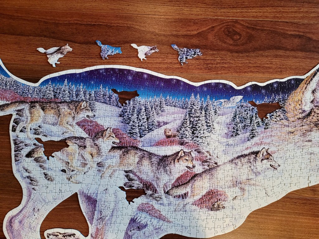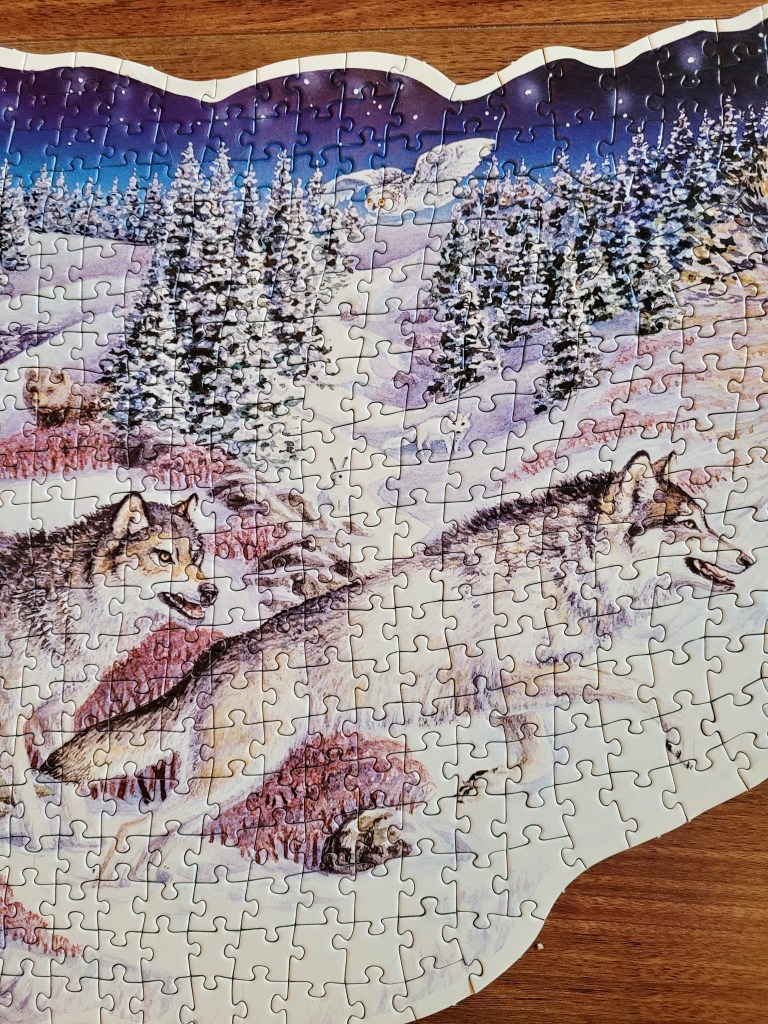 Another Halloween has passed and the Vancouver air is getting chilly. I assembled this puzzle just before Halloween because it felt right for the season, the haunting howl of wolves send a chill down my spine!