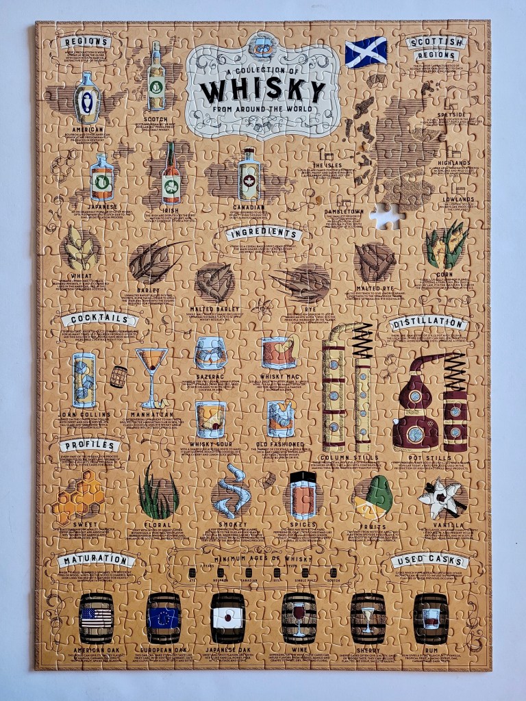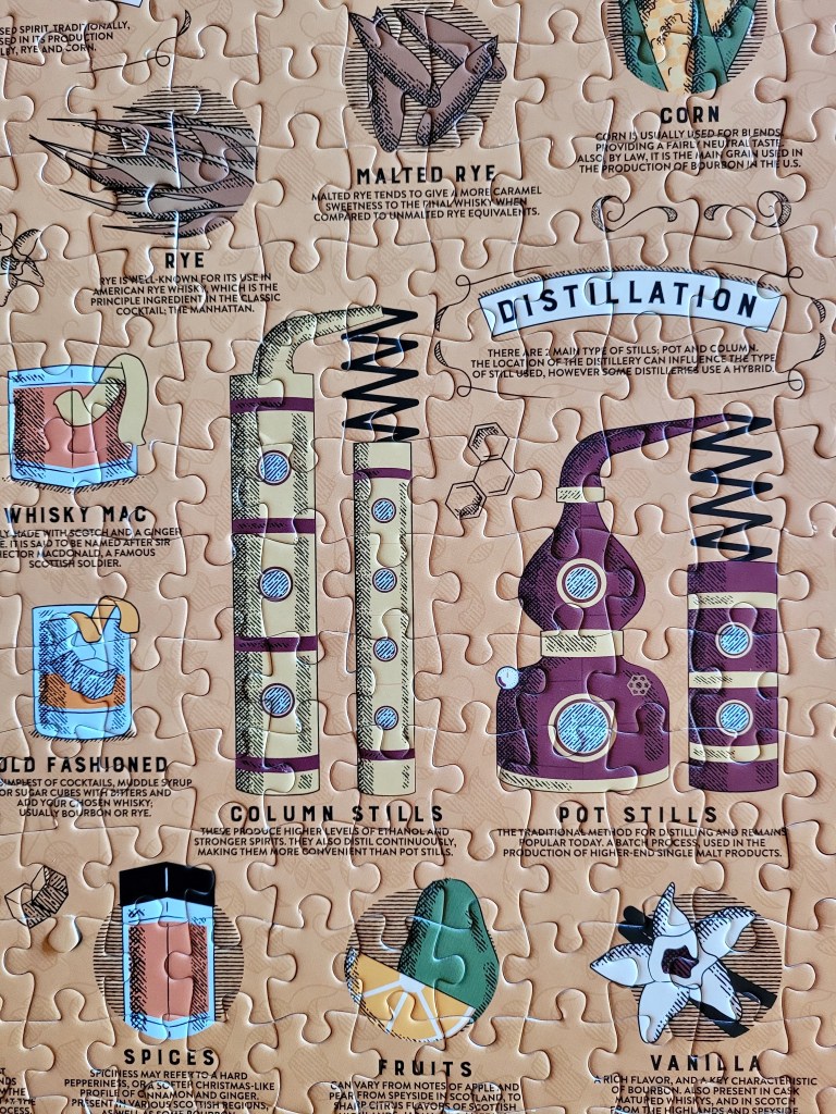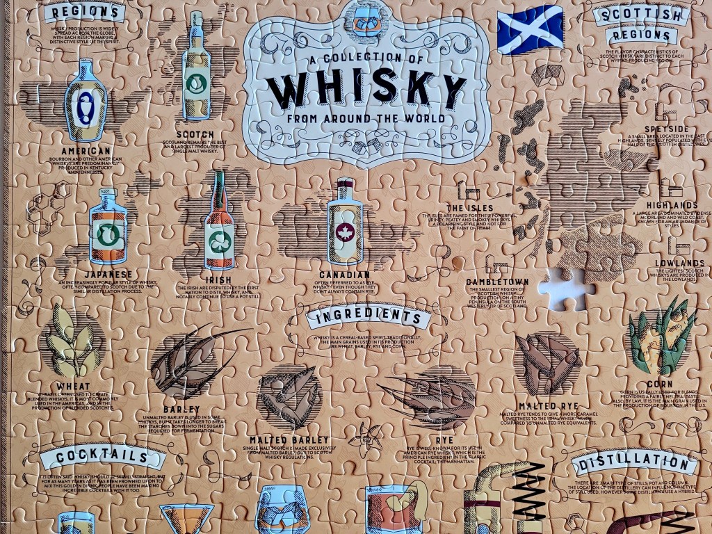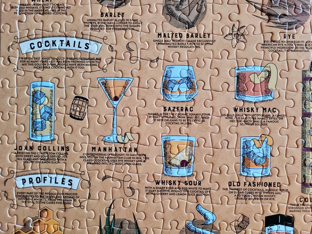 We assembled the puzzle in a few hours together. I learned a little bit more about whiskey from around the world, what type of ingredients are used, different cocktails, it was pretty fun.