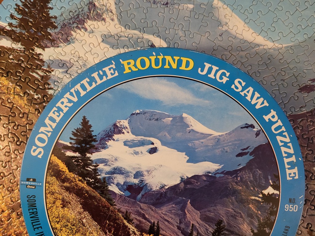 I had actually found a nice vintage Springbok (which I kind of wish I brought home with me) but thought that their puzzle game this time around wasn’t that great. As I was waiting for everyone, I decided to do another sweep of the puzzles and there it was… a round tin. I thought that maybe it was some other kind of toy but sure enough it was a Somerville Games round puzzle. no. 950.