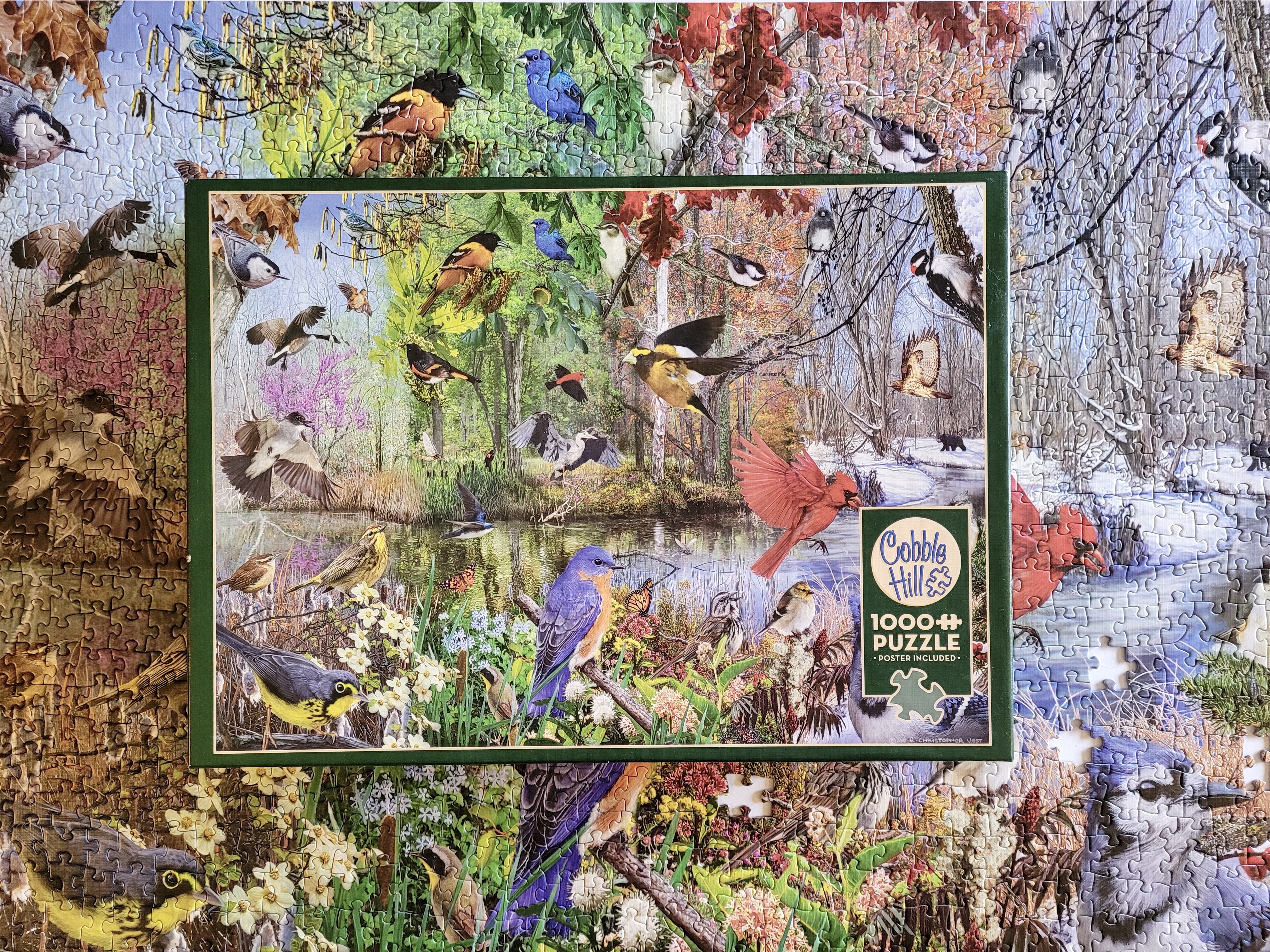 When I arrived, she had this puzzle in hand. I have really been trying to get through the many puzzles that I’ve picked up from the thrift shops. And here was another one, and we all know that I can’t say no to a puzzle!