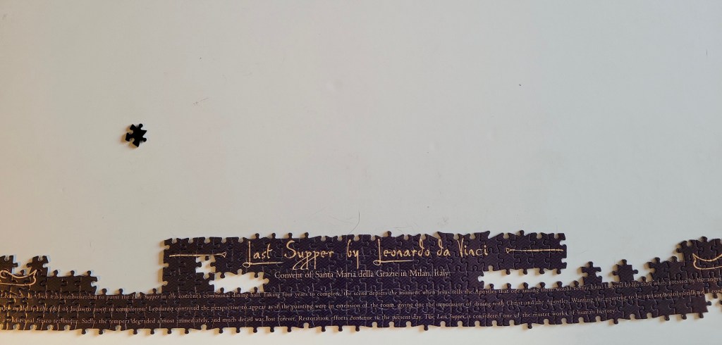 It’s Easter! I thought I’d try and tackle this 2000 piece puzzle of Leonardo DaVinci’s depiction of the Last Supper. See below to find out how that went for me!