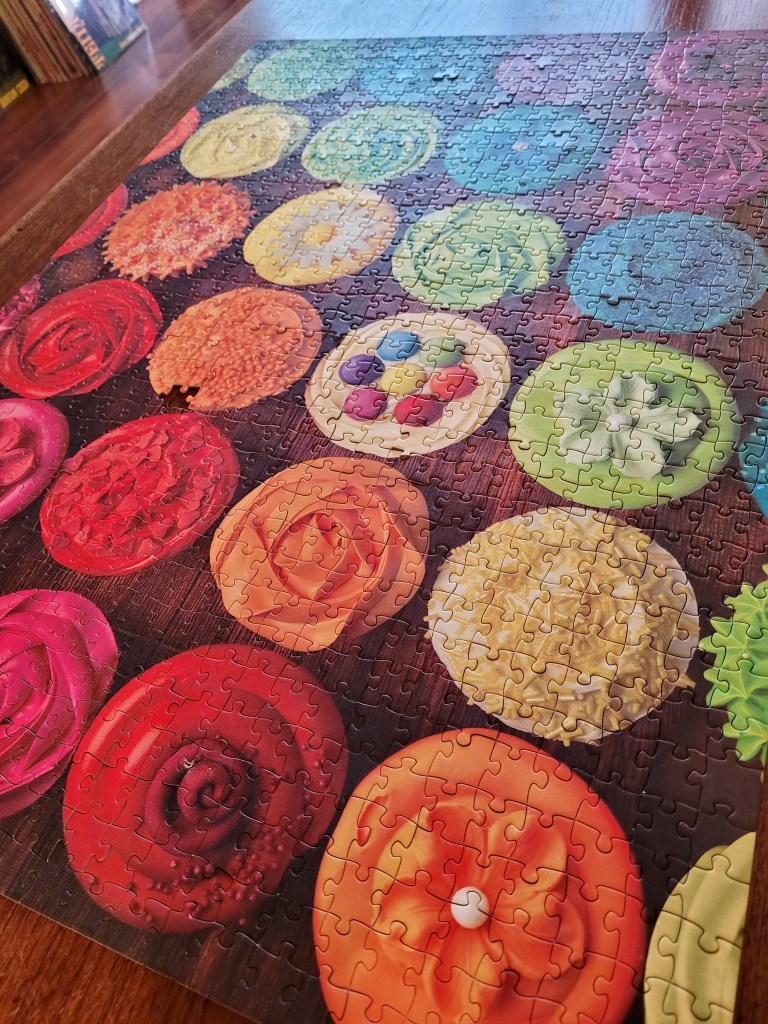 Recently, on Instagram, I participated in another puzzle-along. This one was all food puzzles all the time. I had a few in my stash that I wanted to do and even to revisit, but I wanted a new one, so I popped into Value Village and found this colourful gem.