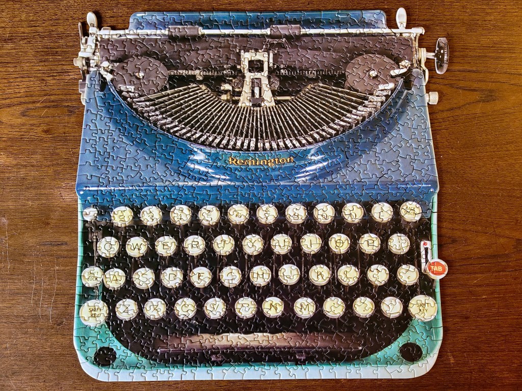 Well, as I said… I was way off. The keyboard was so hard and was eventually left for last. I was able to finish most of the outline, I filled in the bottom and the space bar and then moved up to the long silver keys and the top of the typewriter.