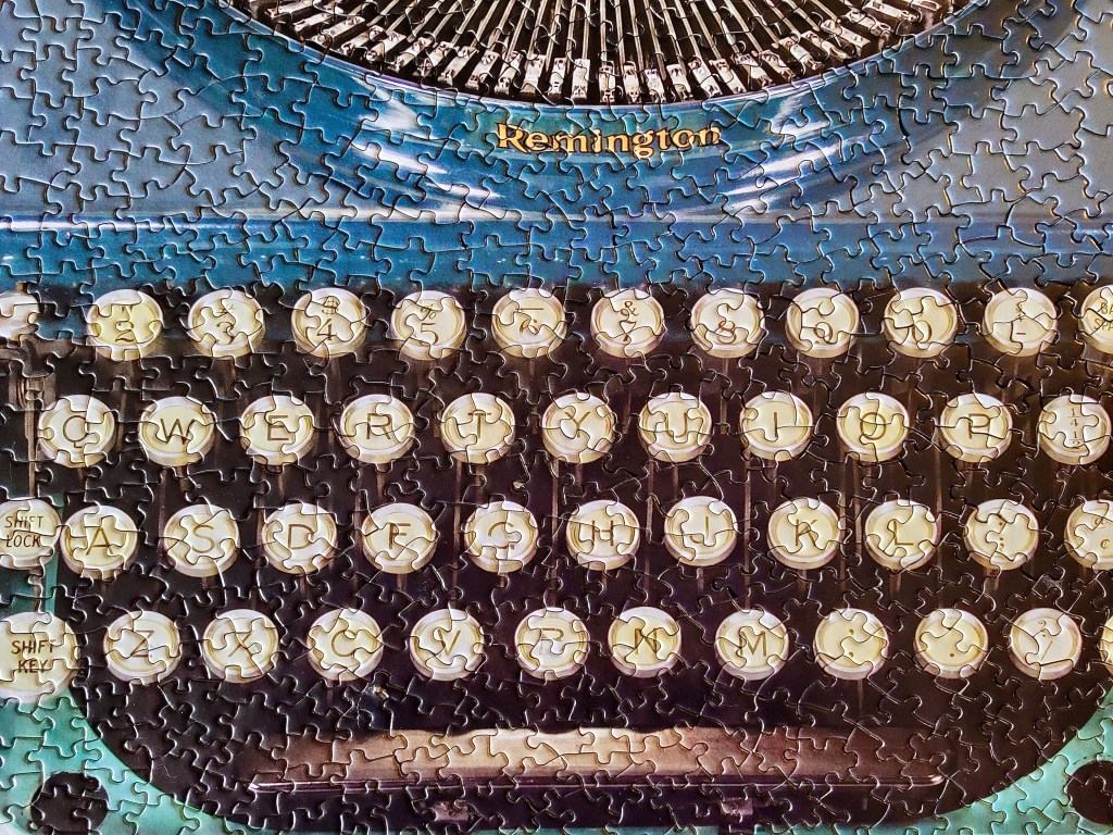 In my strategizing for this puzzle, I was way off! I thought that the keyboard would be the starting point, then maybe the keys, and the blue and dark bits.