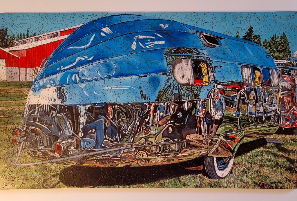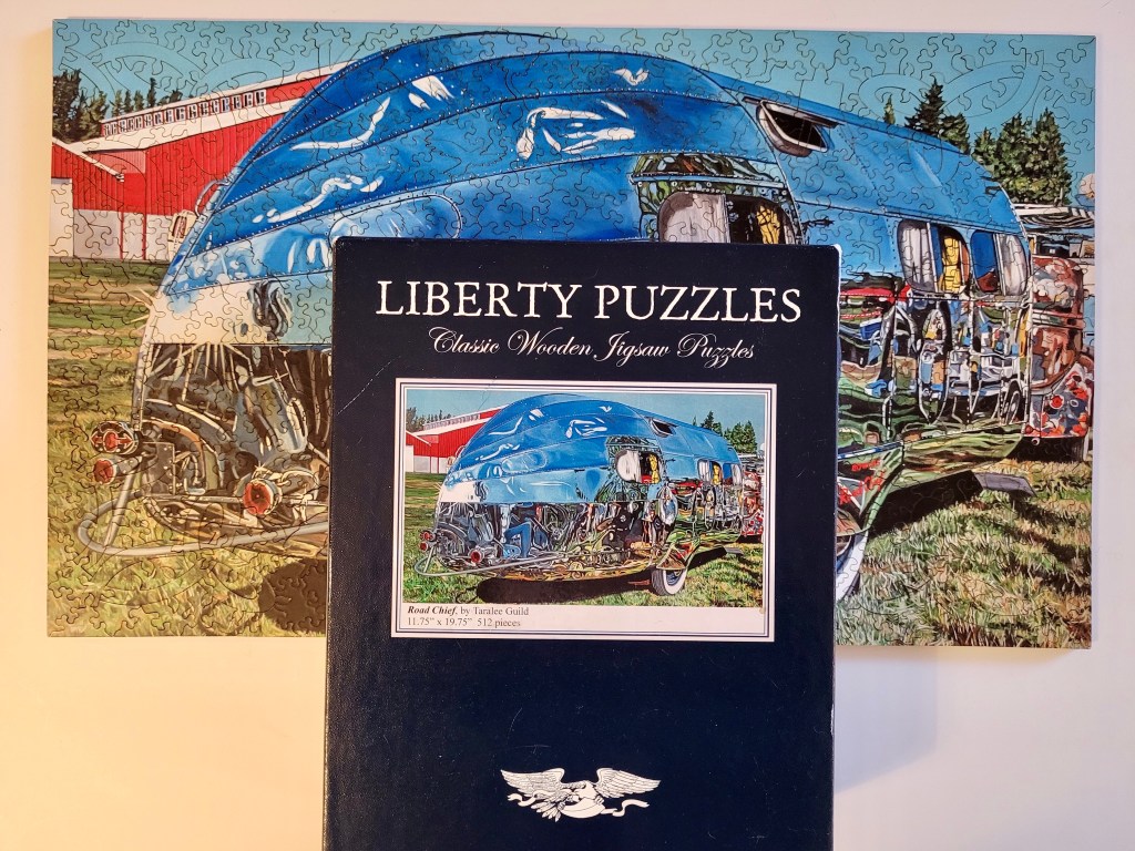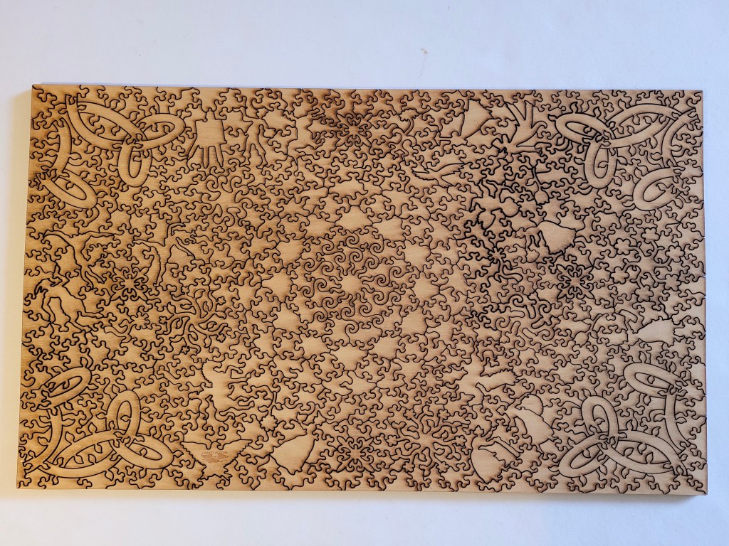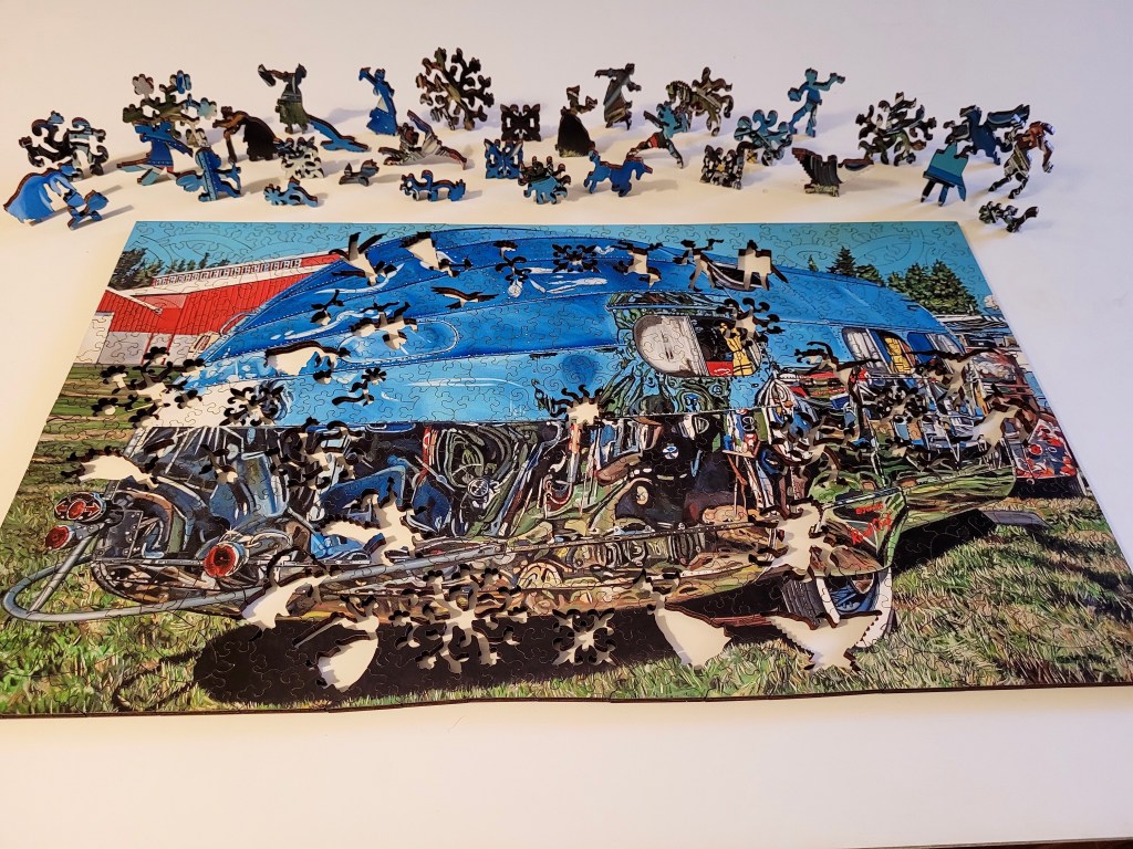 The image is pretty cool, it’s called Road Chief by an artist named Taralee Guild. This made for a good challenge, wooden puzzles in general are harder just due to the wild shapes you’ll see, but the picture was pretty challenging!