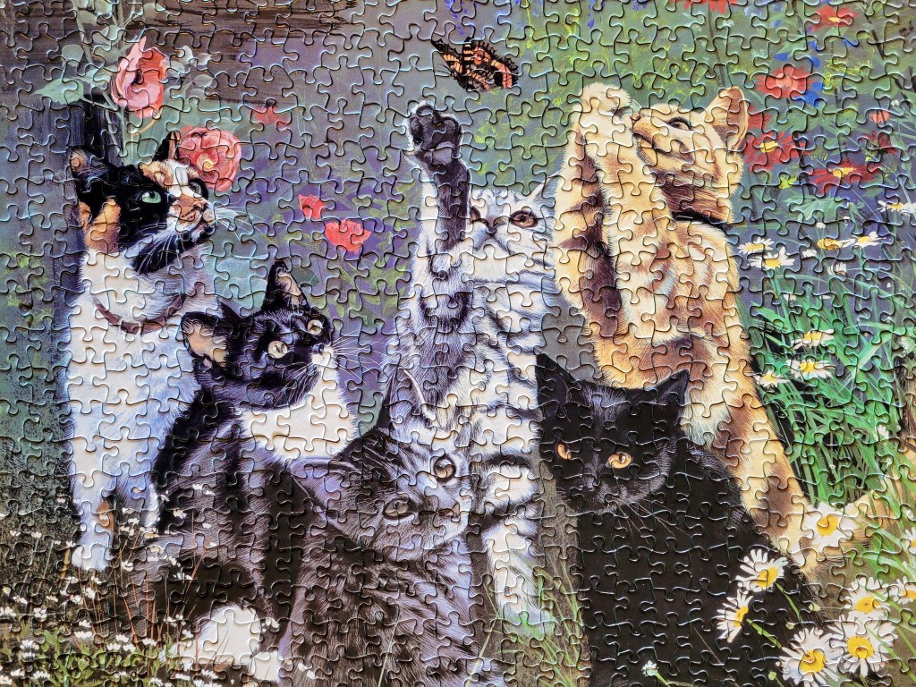 Sometimes the perfect puzzle comes along when you least expect it. I had stopped in at the thrift store one day, just to take a break from the rain, and I found this sweet kitty cat puzzle.