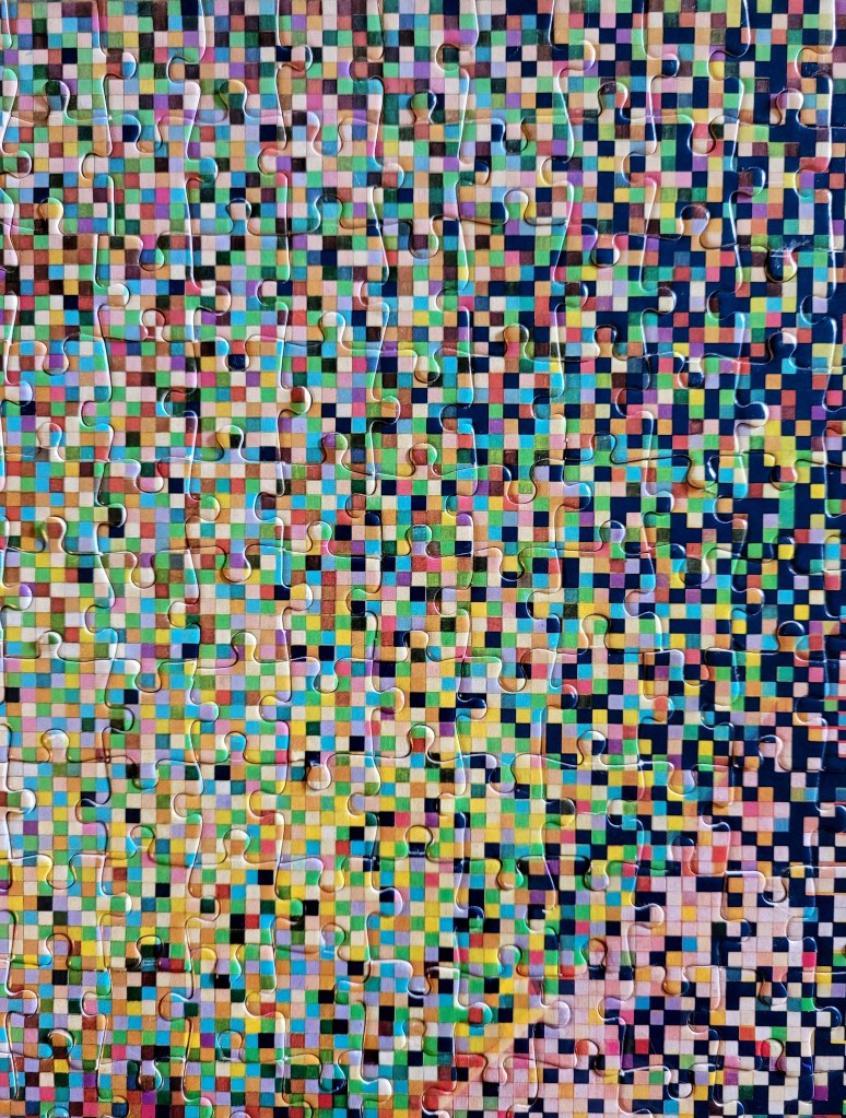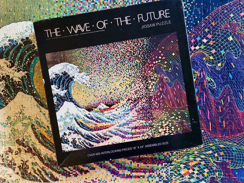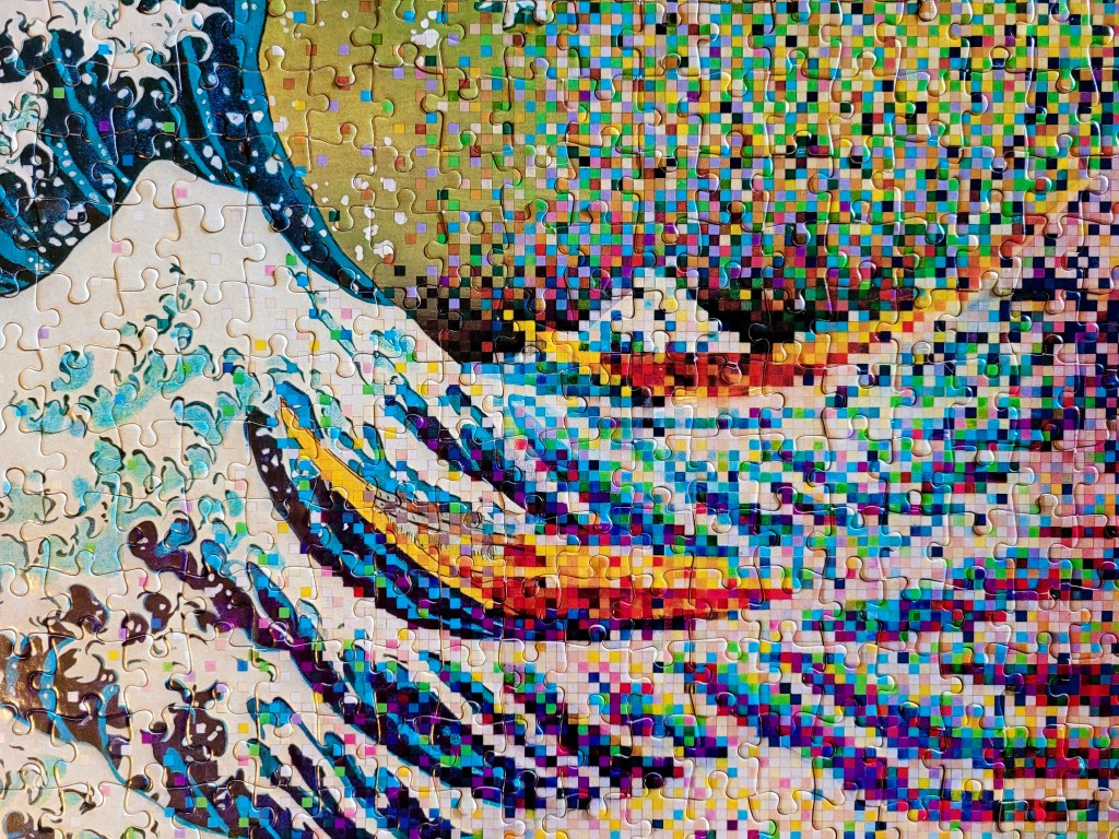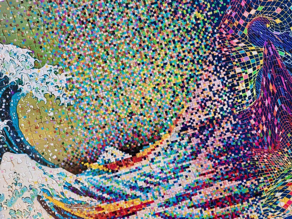 Taking Hokusai’s masterpiece and slowly morphing it into a computer graphic image. I can’t describe how in love with this puzzle I am, when assembled, the colours are so vibrant and the artwork is impressive.