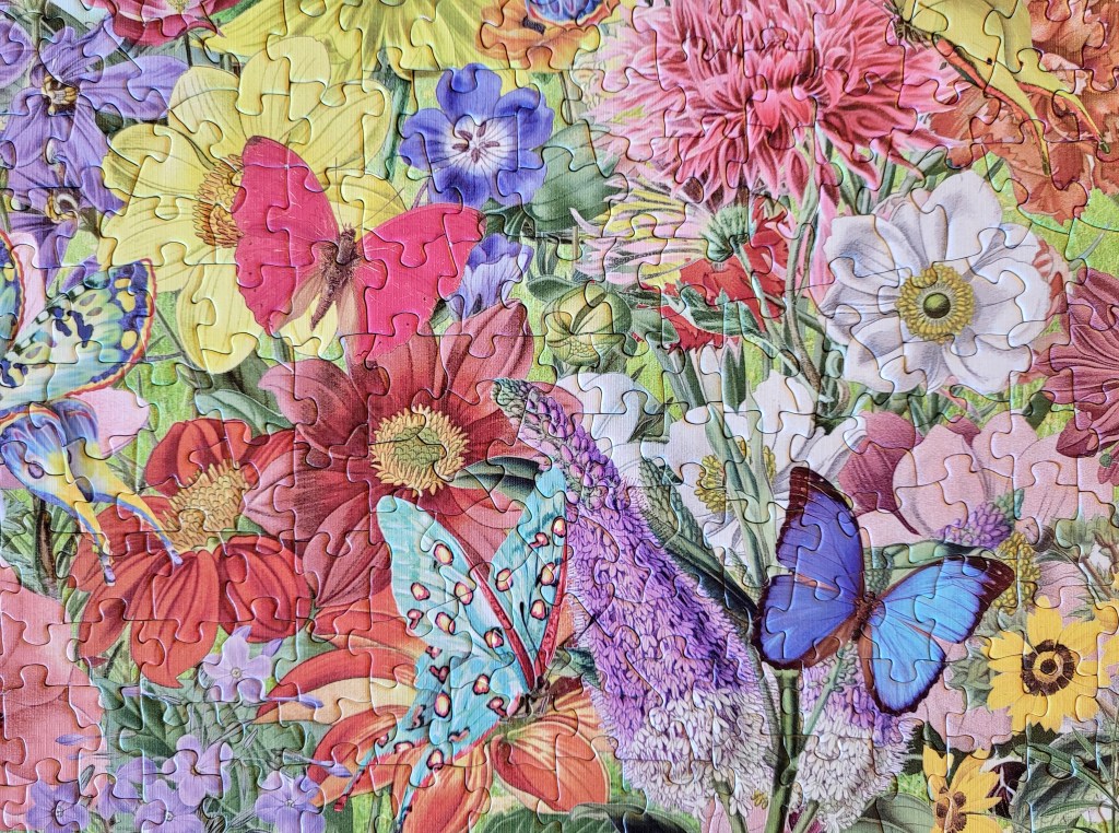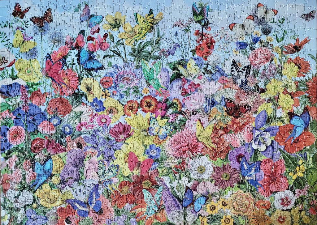 I just love how much detail there was in this puzzle! I really took my time with this one, working on it over a few days. I really got to notice all the beautiful detail in the flowers and of course, in the butterflies, it was so engaging!
