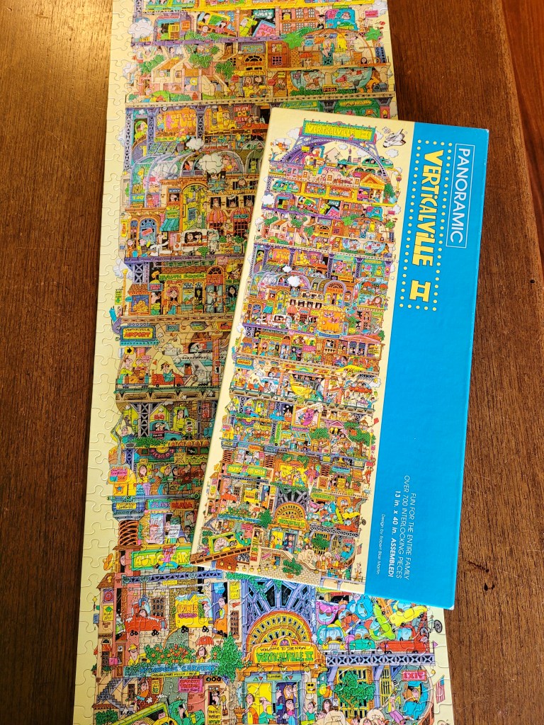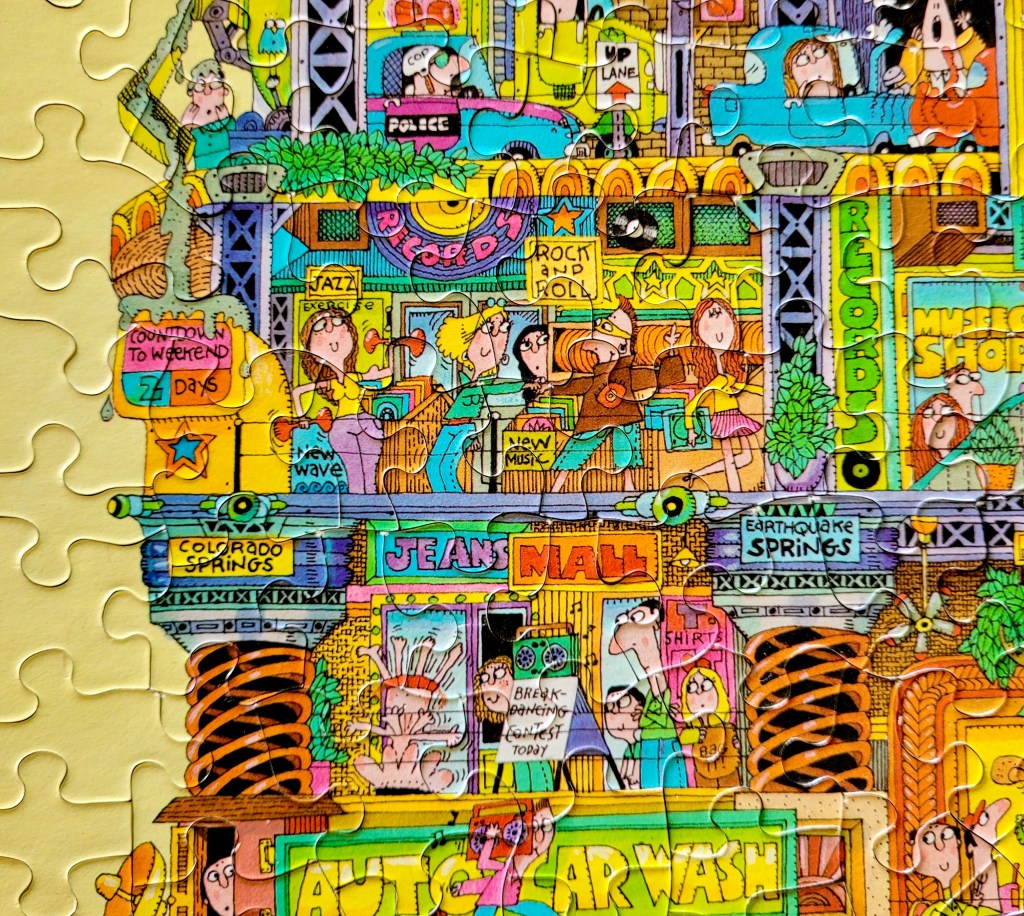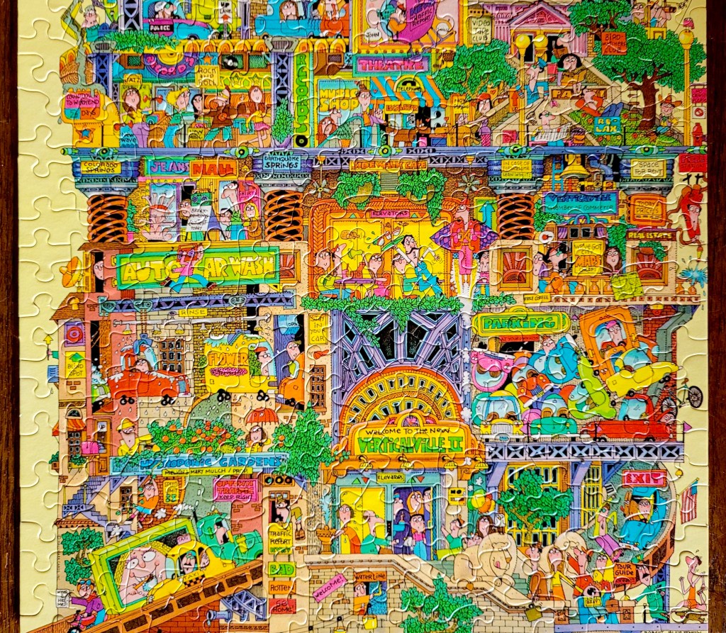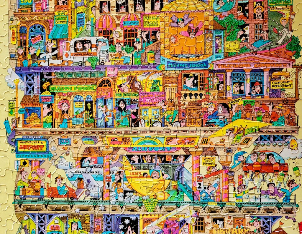 It’s an even taller city that has grown upward, full of zany details just like the other, and was so much fun to put together. This is a puzzle that I’ll be able to do over and over, noticing something new every time.