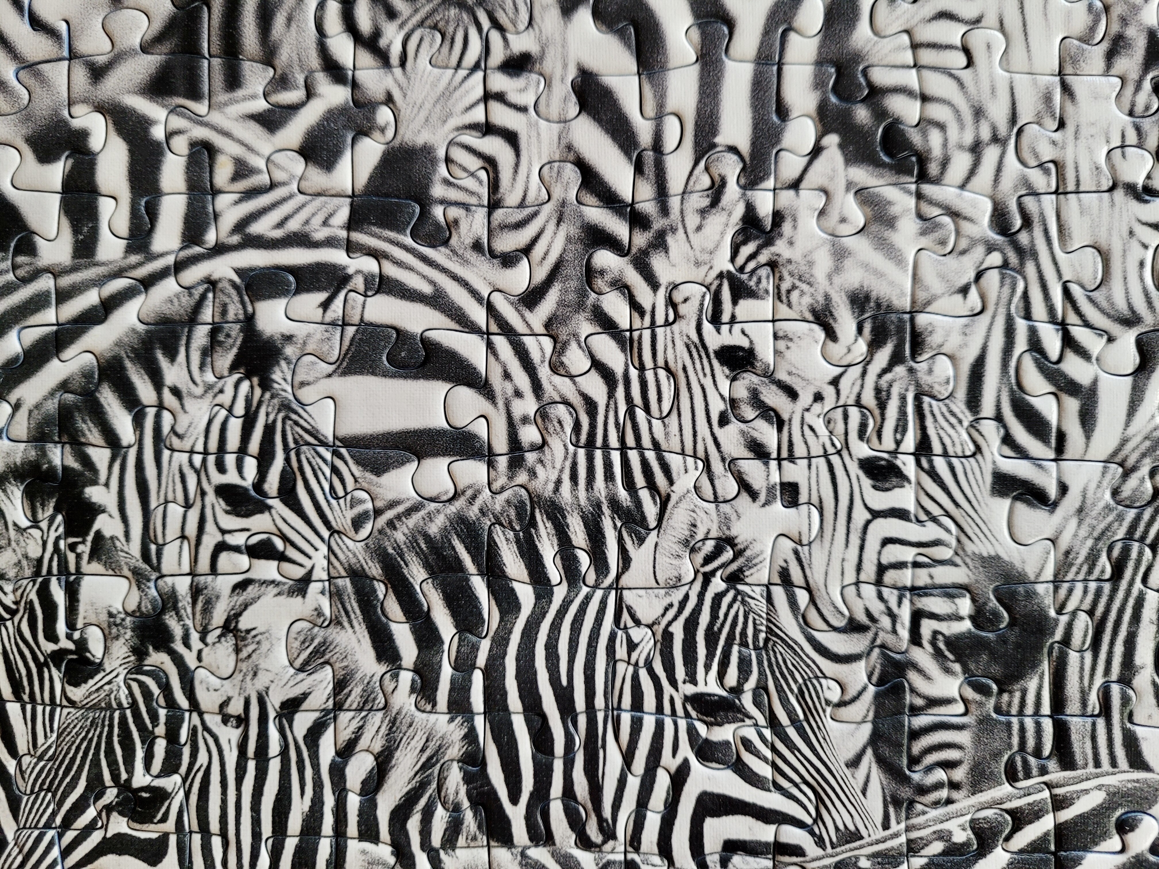 It was hard, that’s for sure! It wasn’t as hard as this one! Thankfully it was only 500 pieces, if it were more, I would have left it on the shelf. This was obviously had because of all the zebras and the black and white, but the image goes blurry up at the top of the puzzle, which interestingly, was a bit of an aid. It was surprisingly helpful!