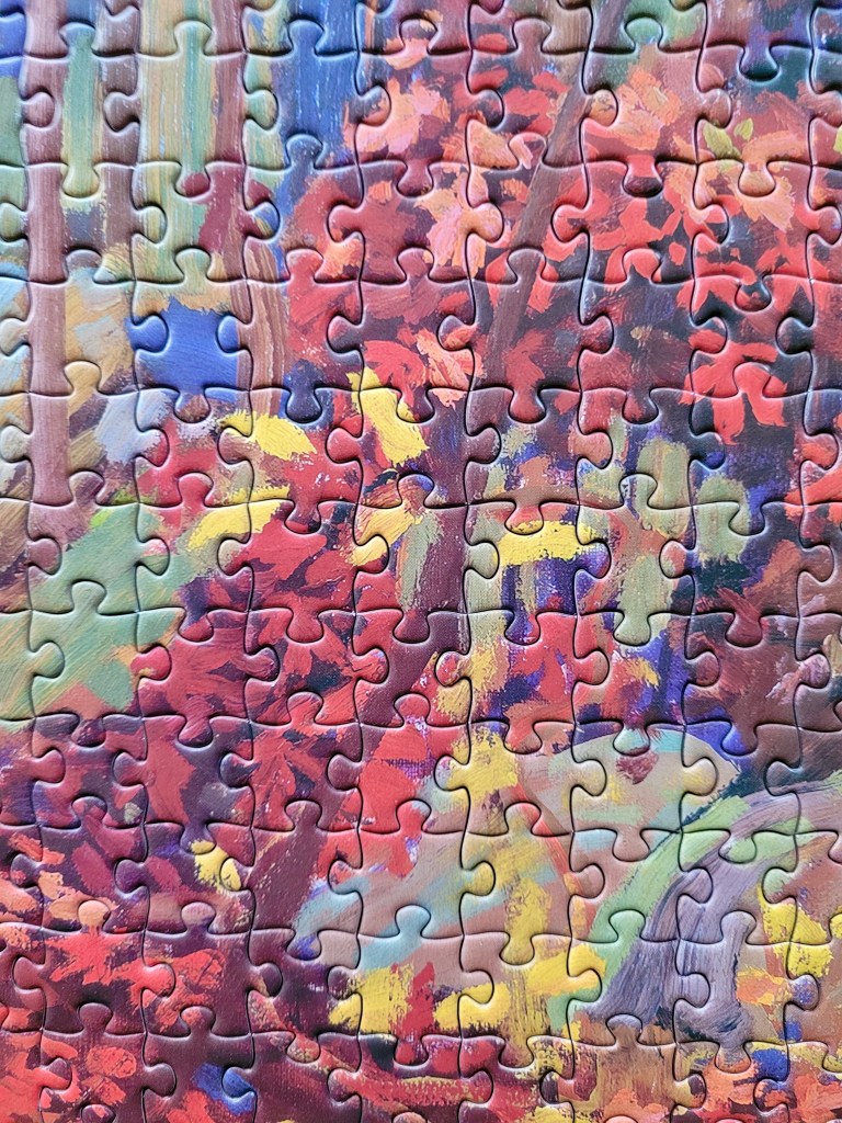 I was right to be intimidated! This was a tough puzzle, the painting is so abstract and up close, all broken up into little pieces, you really don’t have much information to work with. But, I had moved it across the country, it’s feeling so autumnal here, the colours in Halifax are so pretty, that I thought this would be a nice one to put together to celebrate my first autumn in Nova Scotia.