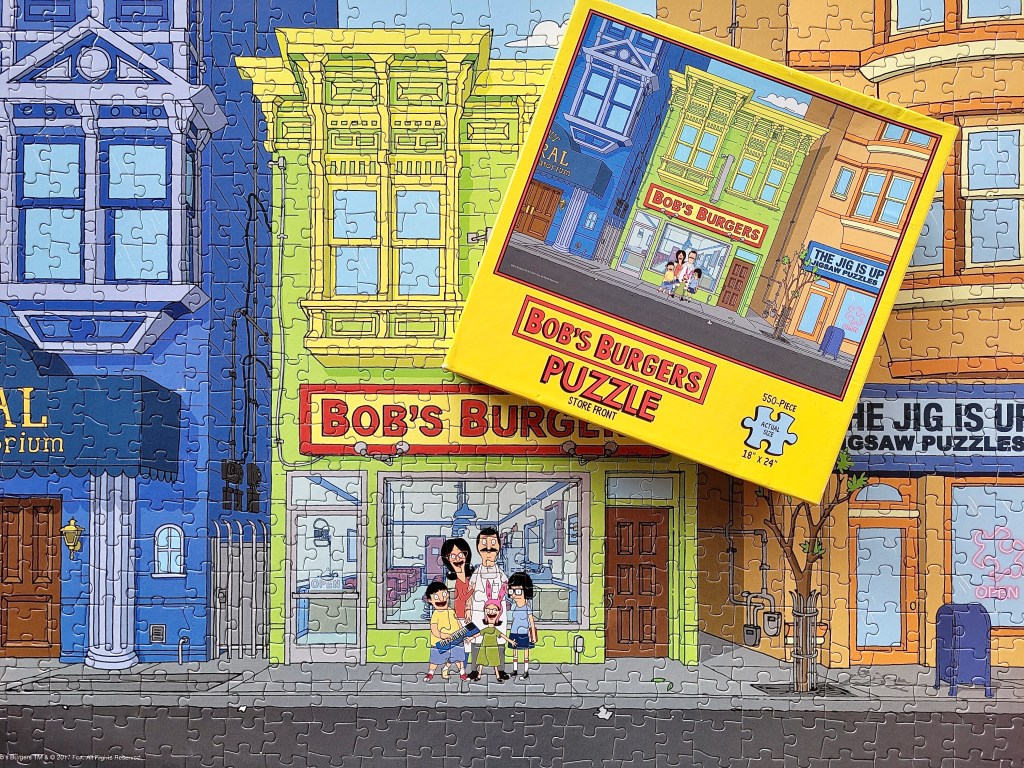 I’m sure you’re thinking… Lina, do you watch Bob’s Burgers? No, I never did, actually. Not because I don’t like it, I just never made a point to watch it. I found this at Value Village a couple of months ago and decided to buy it because Joe really likes it. He’ll puzzle with me sometimes (which I love) but it has to be an image that Joe can really get into.