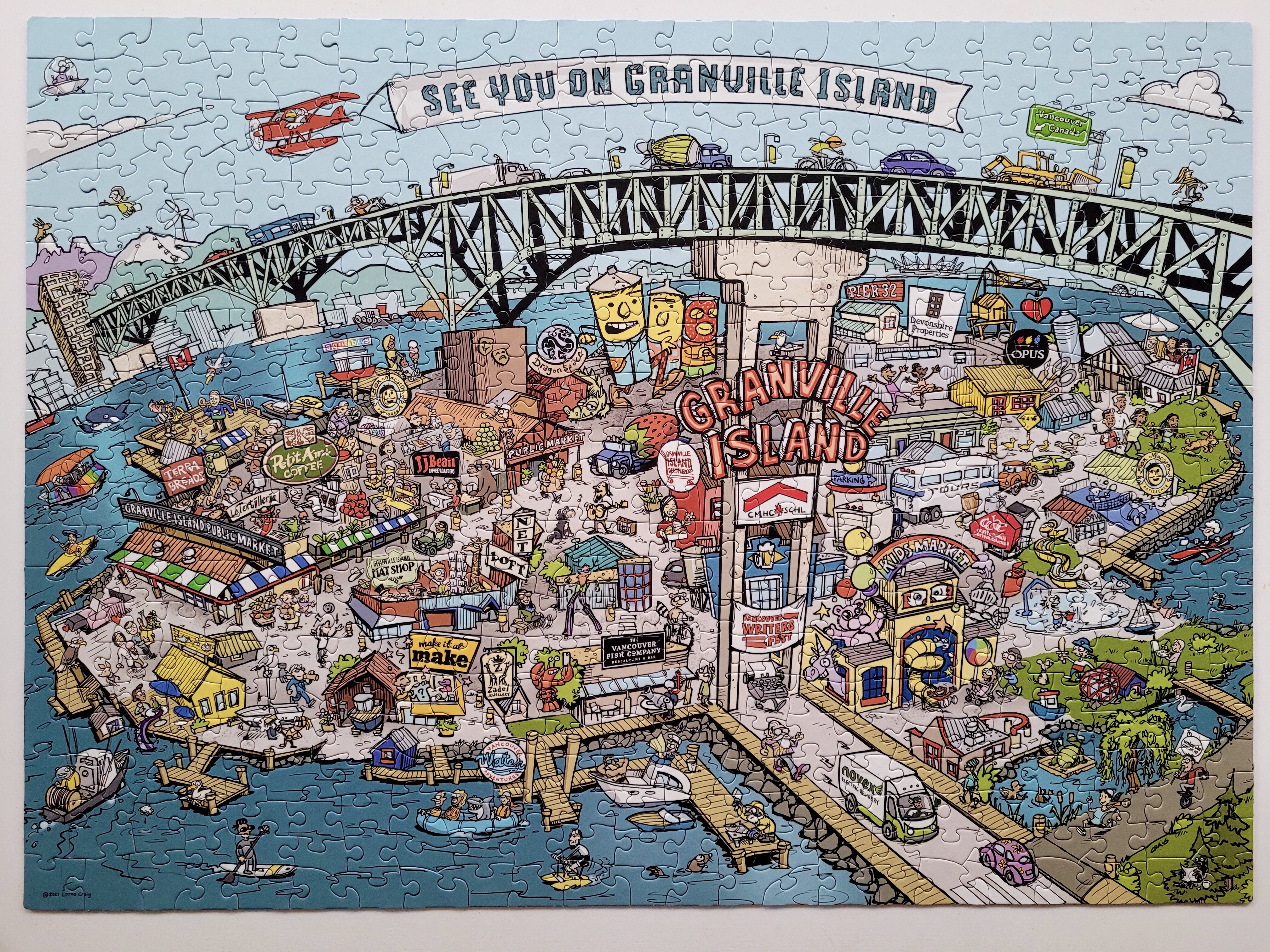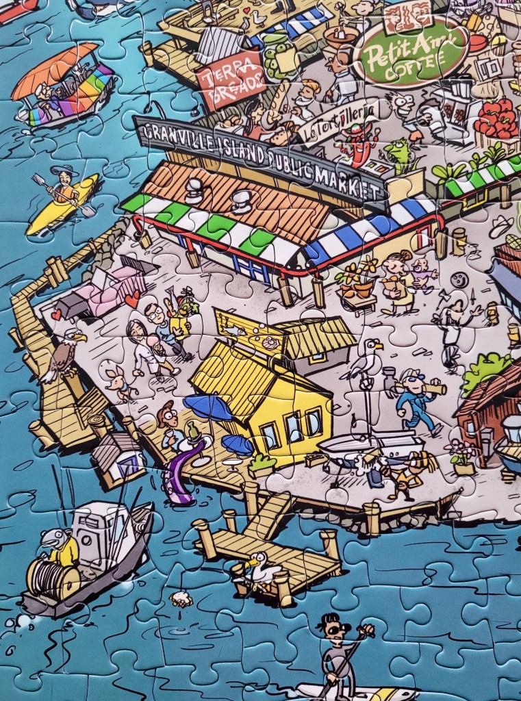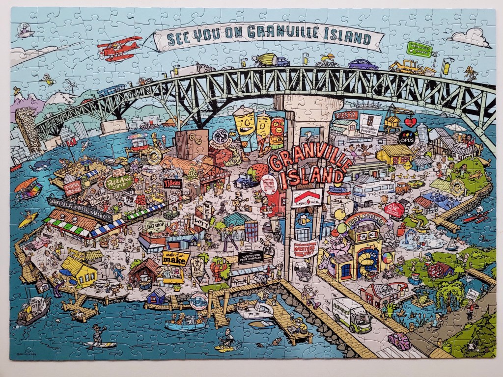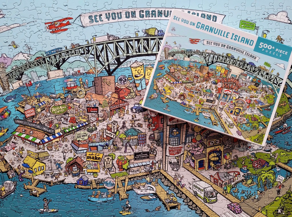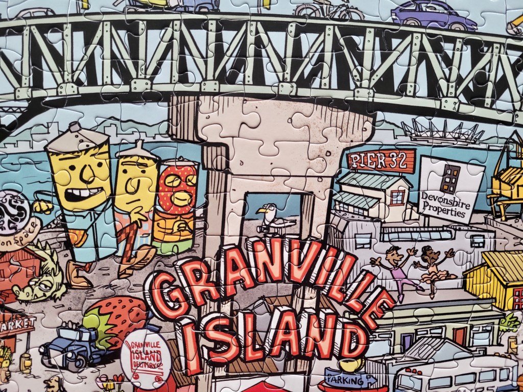 My friend, Sasha works with the Granville Island Delivery Co. She let me know that they released this puzzle in 2021. When we were getting ready to move away, I kept reminding myself to buy this puzzle as a memento of my many years spent in one of my favourite places. When Sasha gifted this to me as a small going away present, I was so touched!