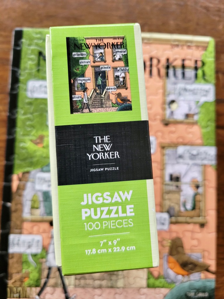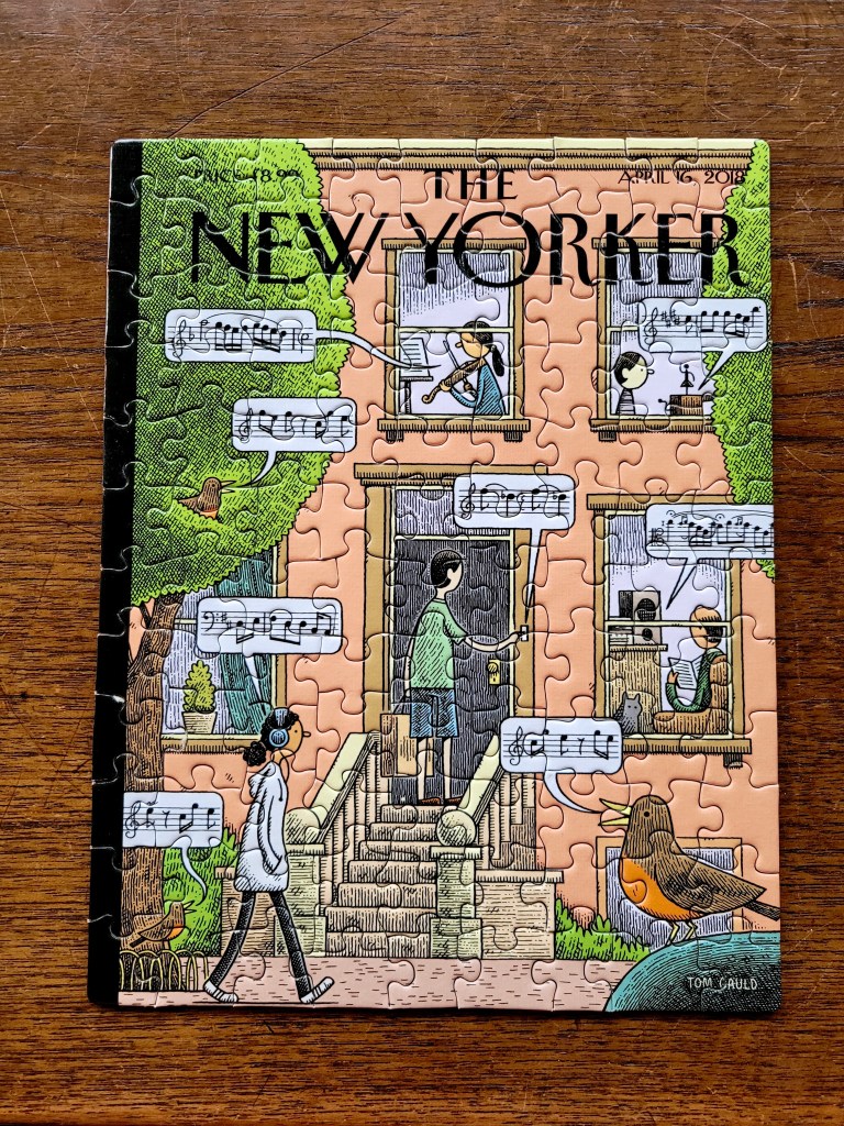 I thought that this sweet little mini puzzle by the New York Puzzle Company would be a nice one to feature in honour of Spring arriving to the East Coast. It’s a New Yorker cover illustrated by Tom Gauld.
