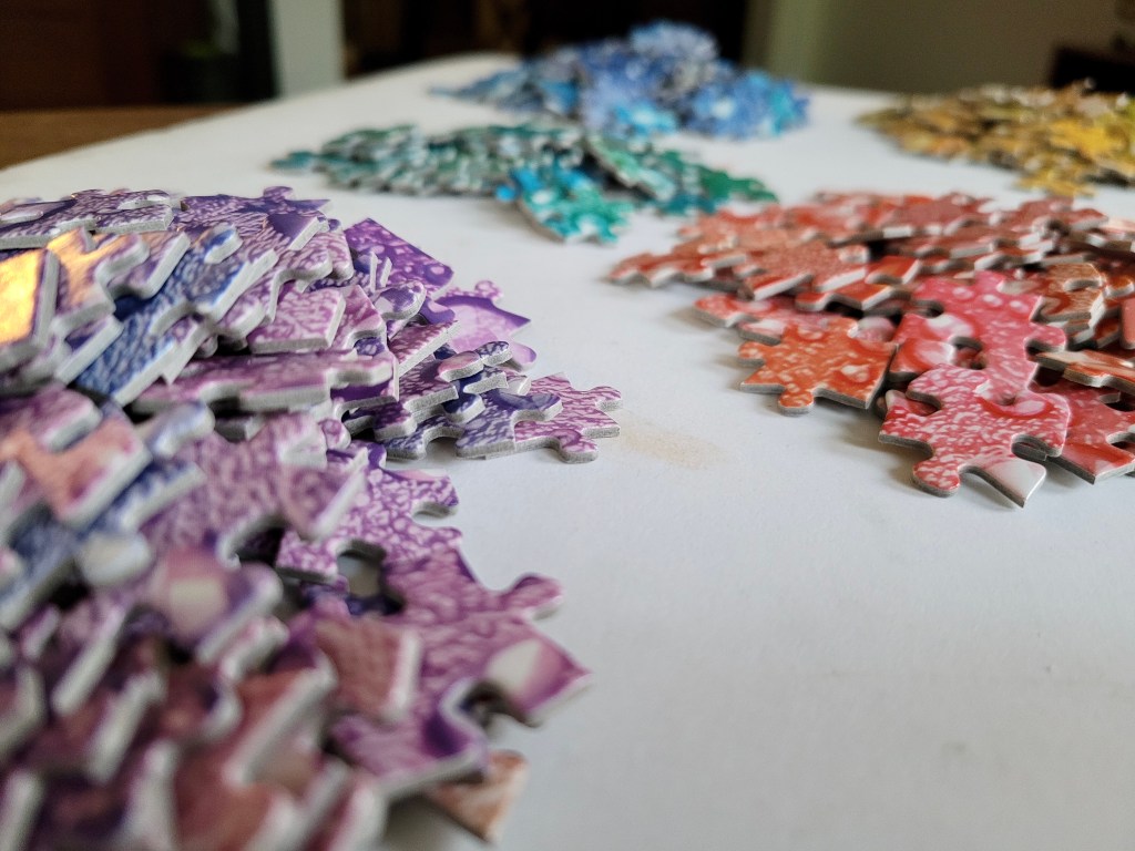 I just love the meditative zone you can get into with a puzzle like this, just focusing on shades, colour saturation, and shapes. It’s super satisfying to me! My favourite section in this puzzle was the greens and blues into the purple.