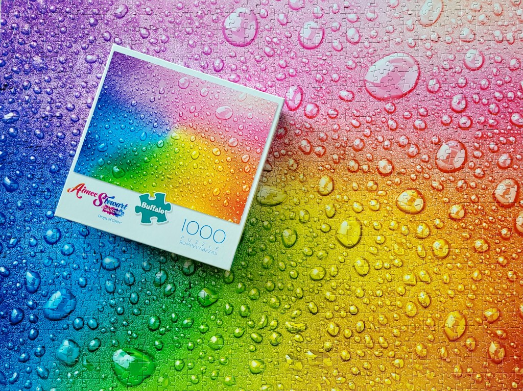 And then, I found this beauty! Aimee Stewart’s Drops of Color. I’ve always really wanted to do this puzzle, but of course, I don’t often buy puzzles brand new. So I just always assumed I wasn’t going to get to try this one. I know how much puzzlers out there love this puzzle too so I was resigned.
