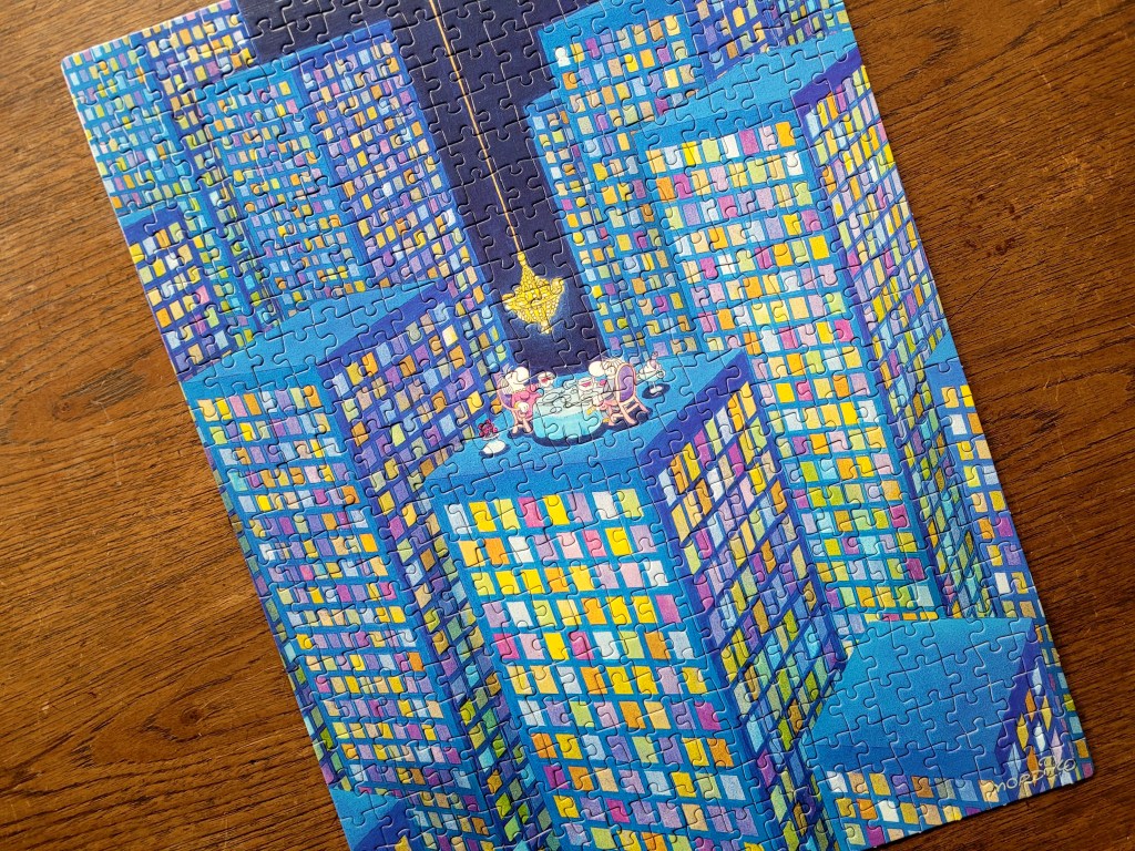 Just like this couple here, enjoying a dinner at the top of a skyscraper building, surrounded by many other tall skyscrapers! I have to say that I was really drawn to the buildings, I just thought that part would be fun and a little tricky. I was right too, I puzzled this without looking at the box, which had me puzzling a little longer.