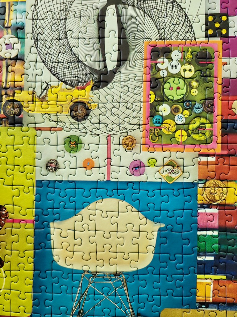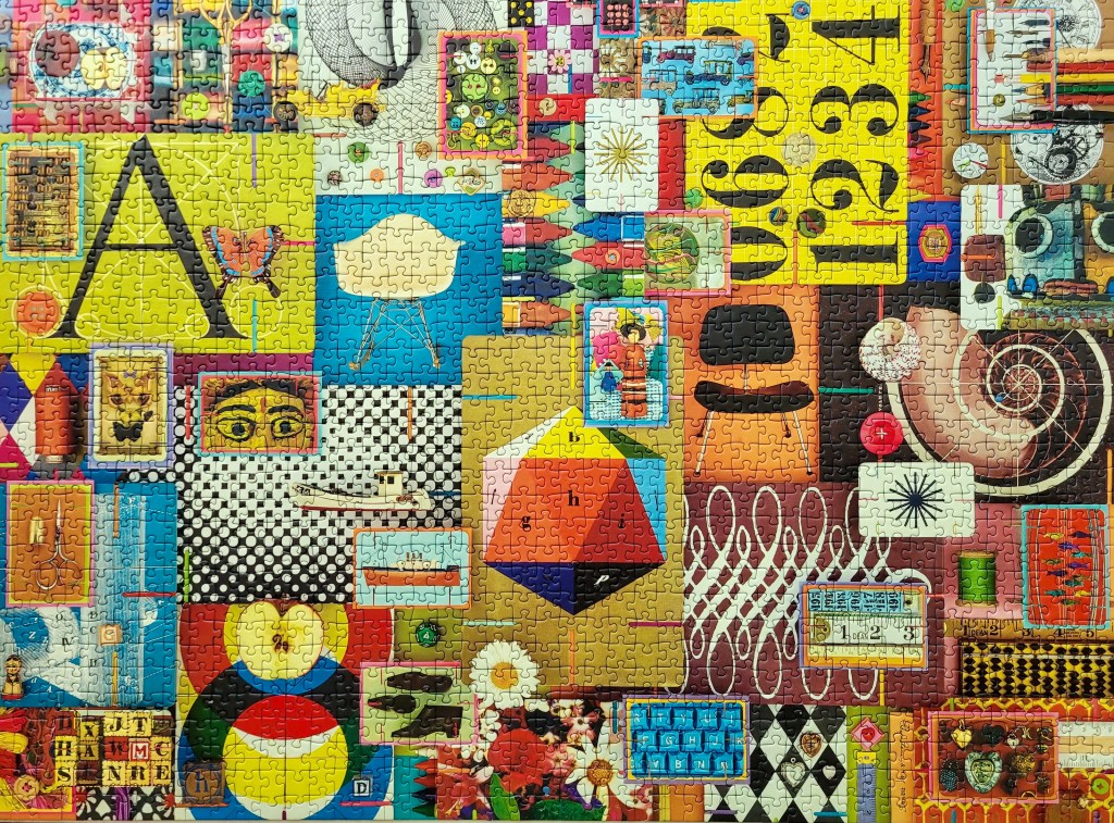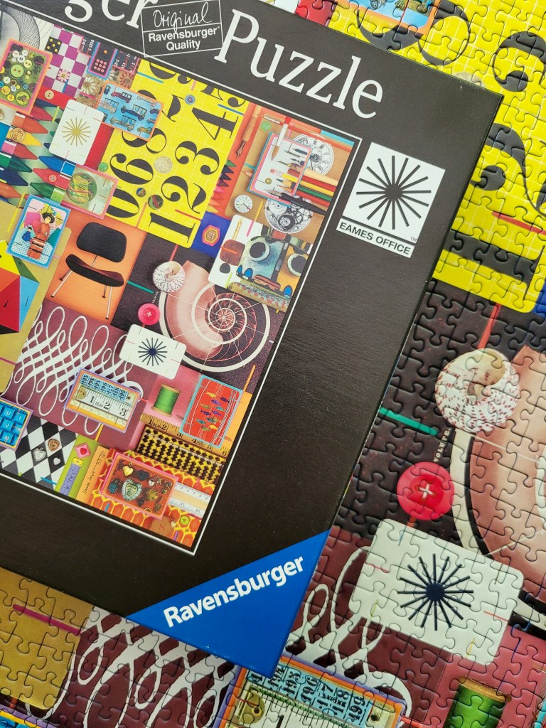This collage seems to feature their works in art, graphic design, furniture design and maybe even some of their inspirations when making work. I love the aesthetic of this puzzle, it was pretty fun to put this one together and it went fairly quickly for a 1500 piece puzzle.