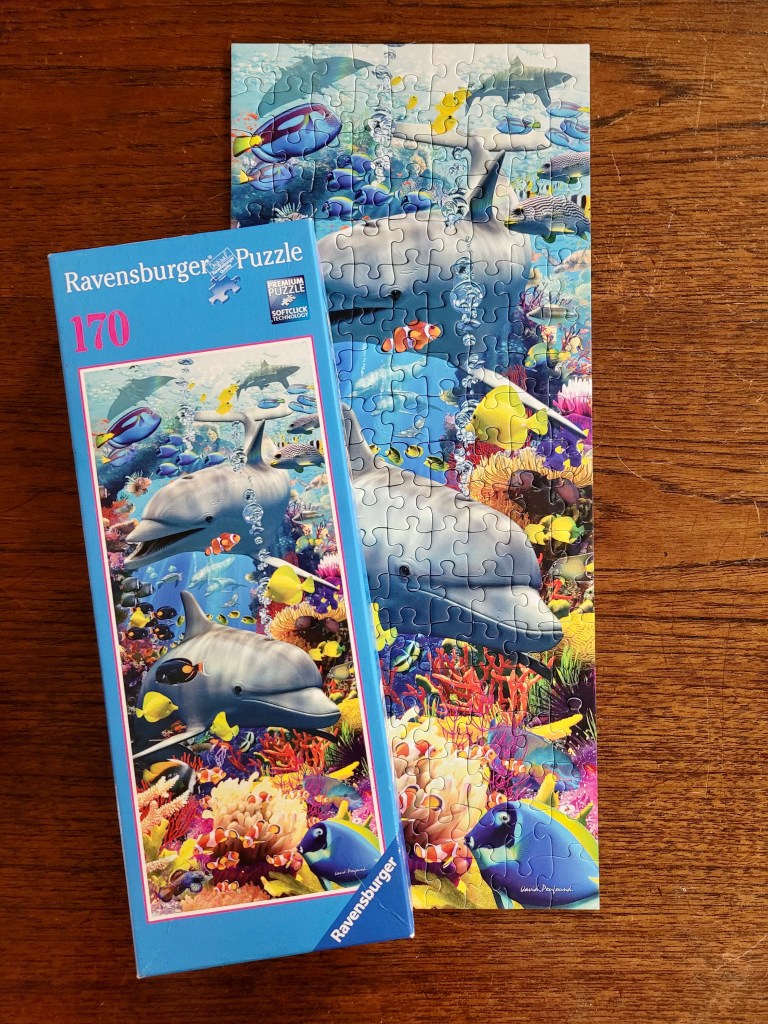 I found this puzzle at Value Village during the puzzle along week and had never seen these mini panoramic length puzzles by Ravensburger before. I loved the idea of assembling a Ravensburger but in a smaller piece count for the work days, when I have very little puzzle time.