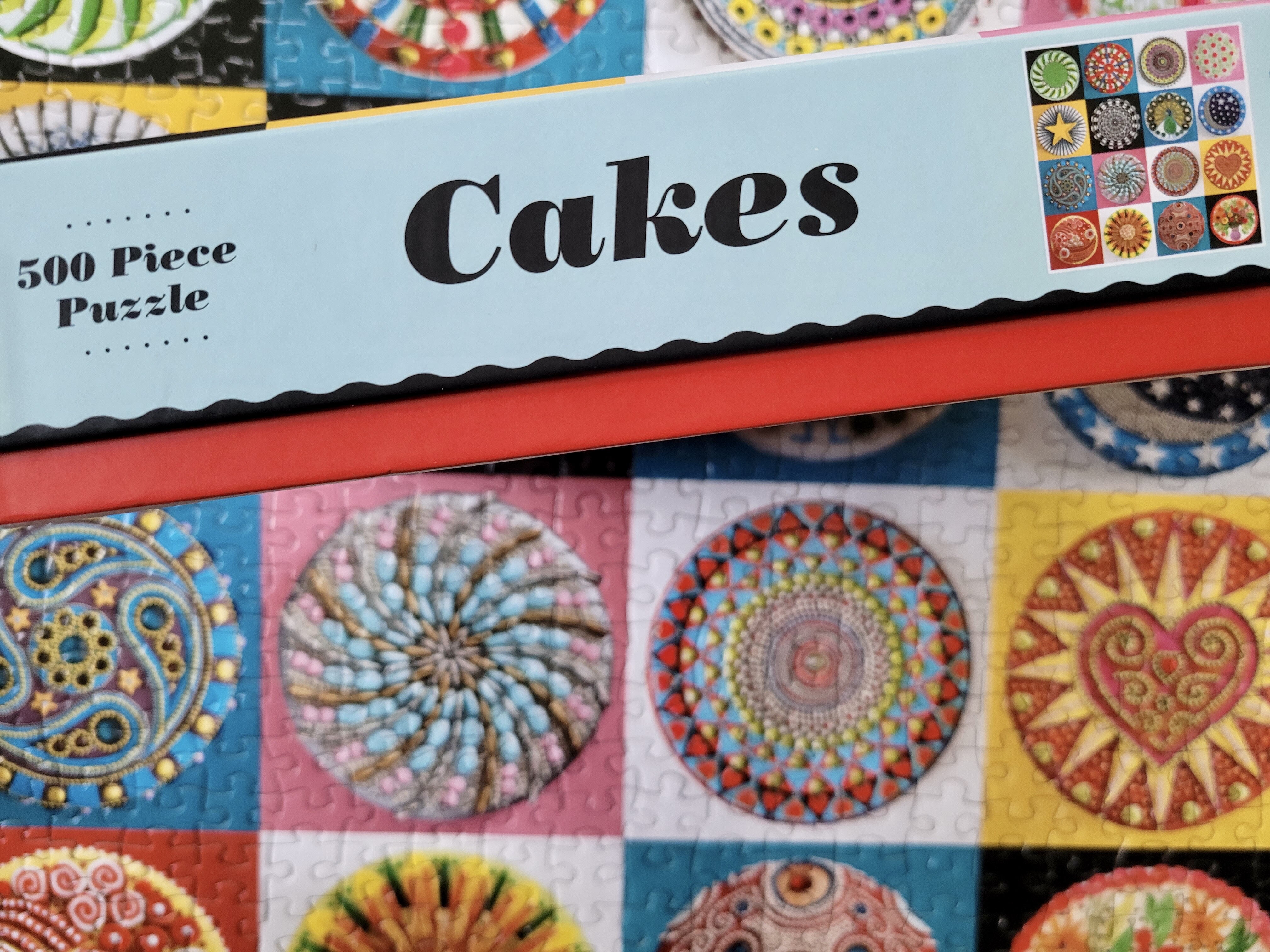 Well, it’s been about a month, but I assembled this puzzle for my birthday, Cakes by Galison. I found this one, not too long ago at the Mission Mart and I grabbed it. I’ve seen it online plenty and always loved the imagery, but being a tile format puzzle, I knew this would be such an easy puzzle, and I typically don’t buy easy puzzles brand new.
