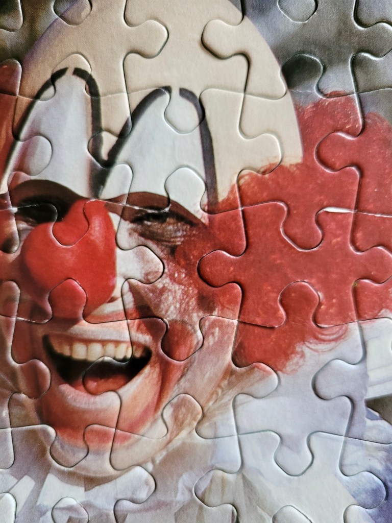 The Halloween puzzle-along continues! Todays themed puzzle was probably not intentionally trying to be spooky but there are many out there that are afraid of clowns, and these smiling clowns certainly pass the creep test!