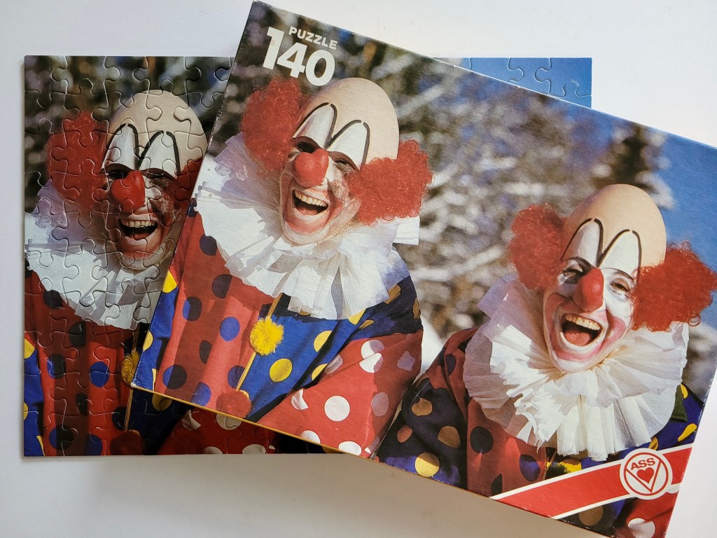 Naturally I had to bring these clowns home with me! This is just a 140 piece puzzle and I think it was probably made a little more recently than the Venice puzzle was, perhaps the 1980s?