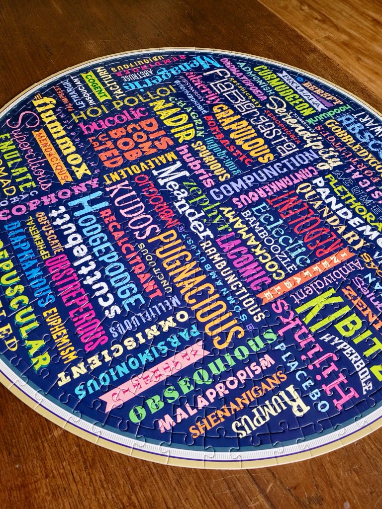 It’s 100 Great Words, again! I bought this from the dollar store last Spring, assembled it, then traded it with a puzzler in town.
