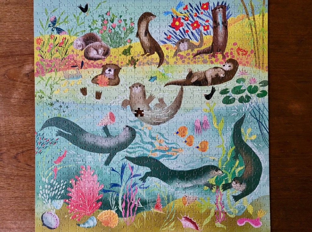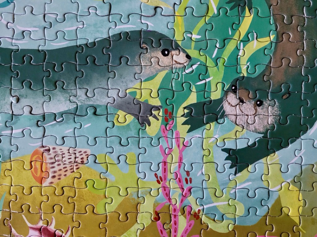 Who doesn’t love sea otters? They have to be the sweetest most playful animals out there. When I saw that Eeboo made this puzzle a few years ago, I marked it in my mind and kept an eye out at the thrift stores.