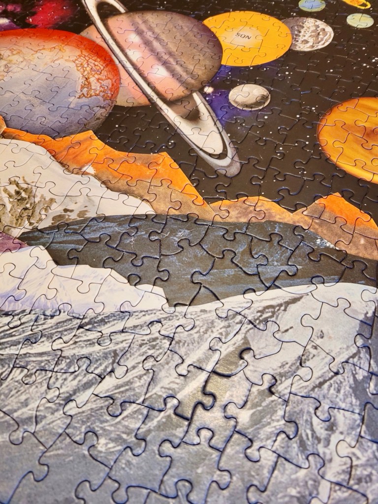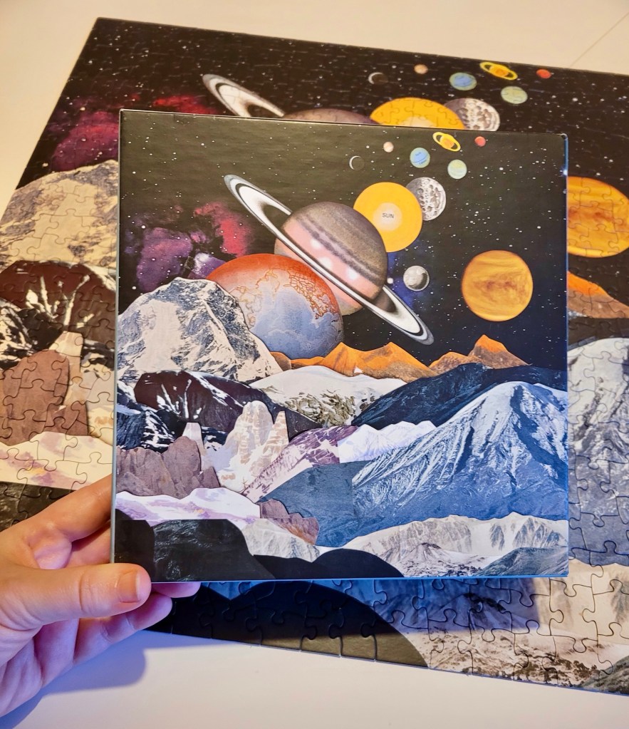 A pretty cool puzzle too, if you ask me. It was called Out of This World, 500 pieces, made by Galison, and it was pretty new. If I had to guess, it had only been put together once, or maybe twice?