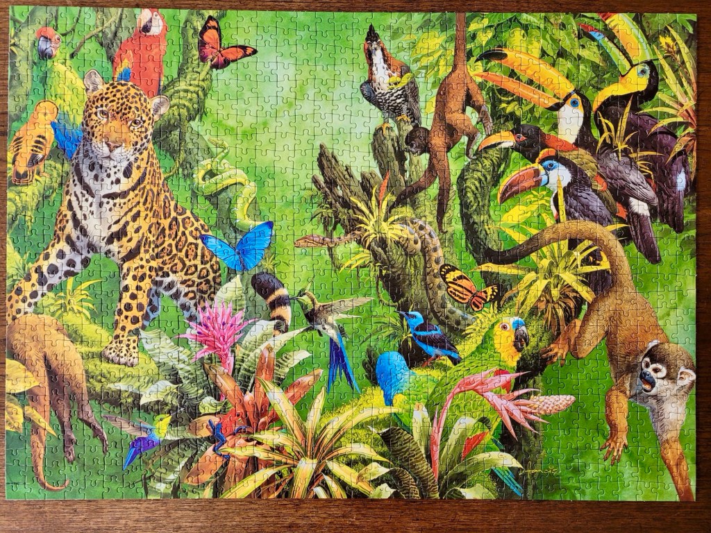 For the sake of a gorgeous rainforest puzzle, this gorgeous and curious cat does the trick though!
