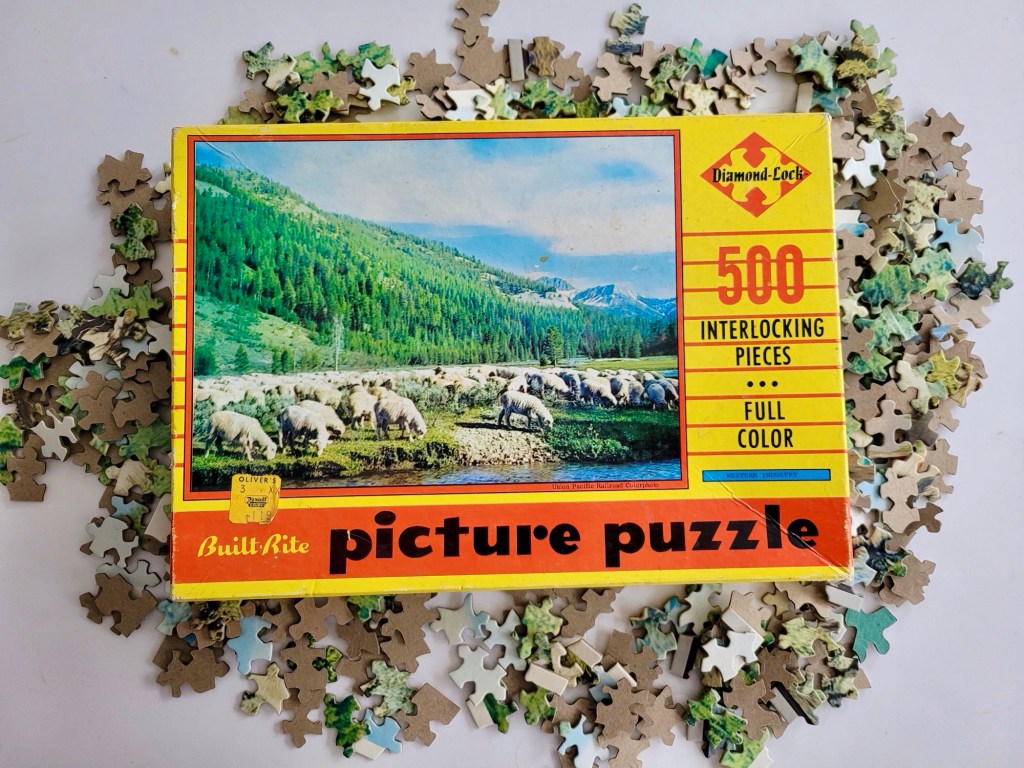 This is a lovely little vintage 500 piece puzzle by Warren Paper Products – a brand that I will definitely have to keep an eye out for in the future. 28 missing pieces with a Diamond cut and Built-Rite!