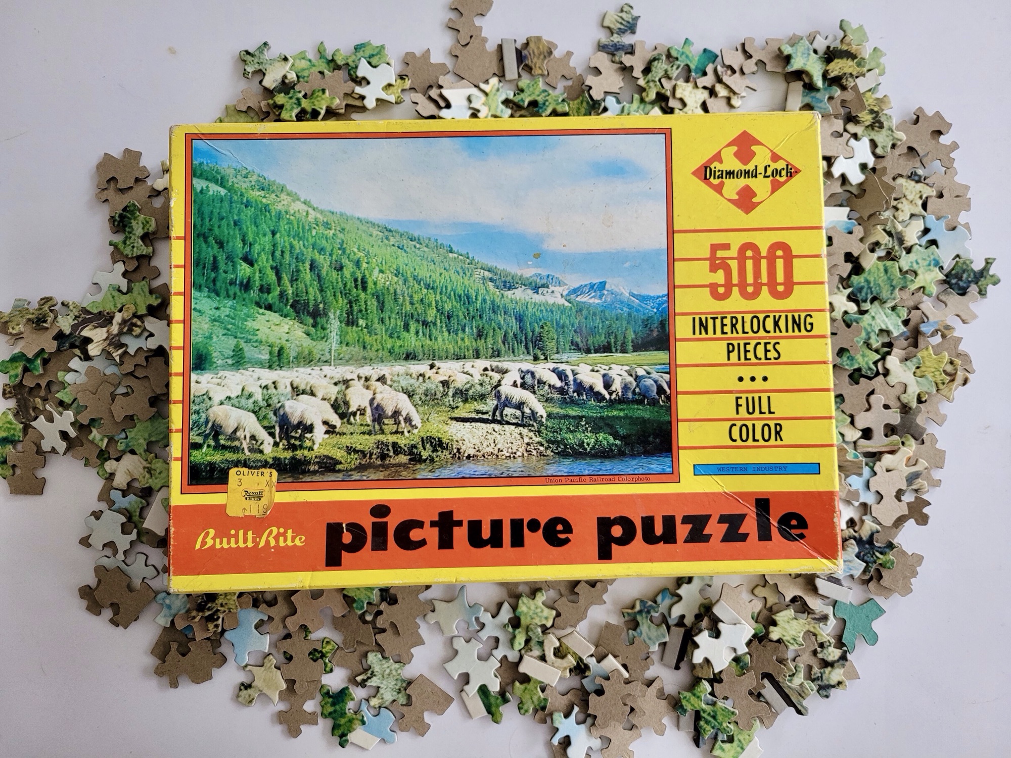This is a lovely little vintage 500 piece puzzle by Warren Paper Products – a brand that I will definitely have to keep an eye out for in the future. 28 missing pieces with a Diamond cut and Built-Rite!